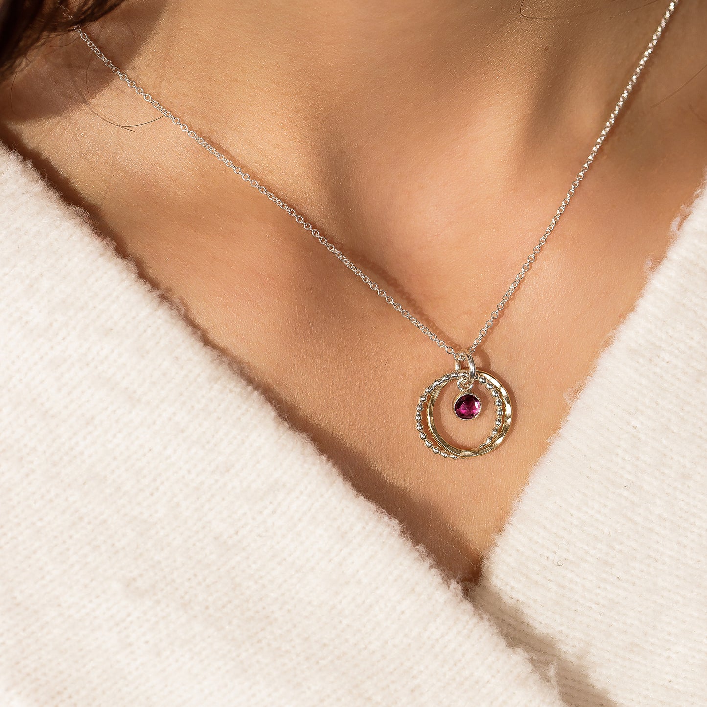 Celebrate and inspire your loved one with a double link necklace handmade with rhodolite, which symbolises compassion.