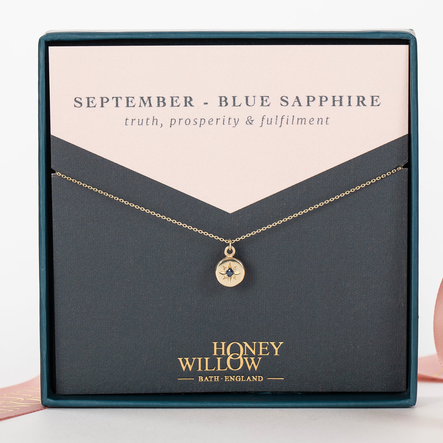 Celebrate her September birthday with a dainty 9kt gold necklace, star-set with a tiny blue sapphire.