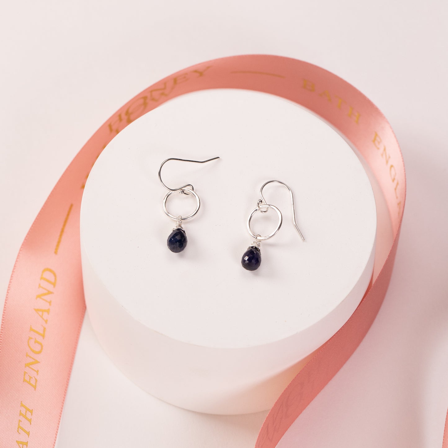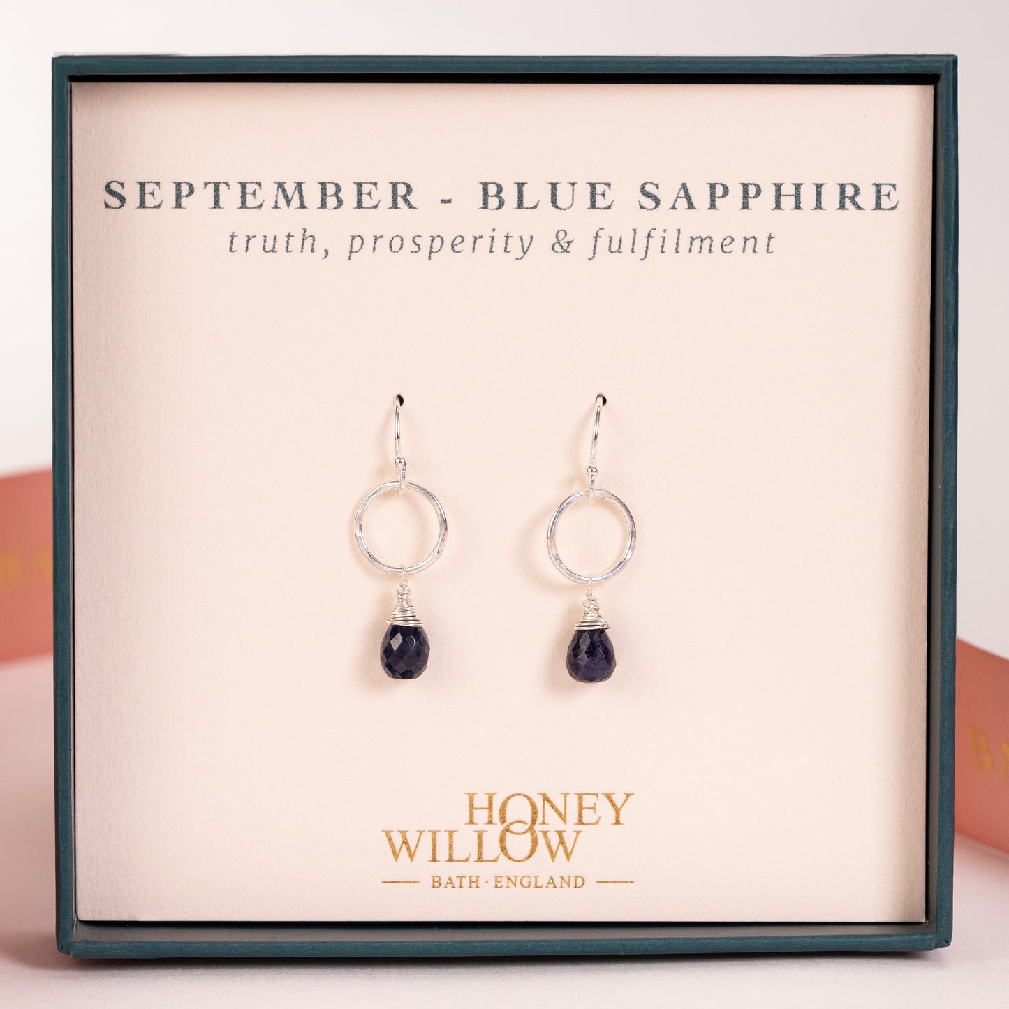 Celebrate her September birthday with dainty sapphire circle earrings.