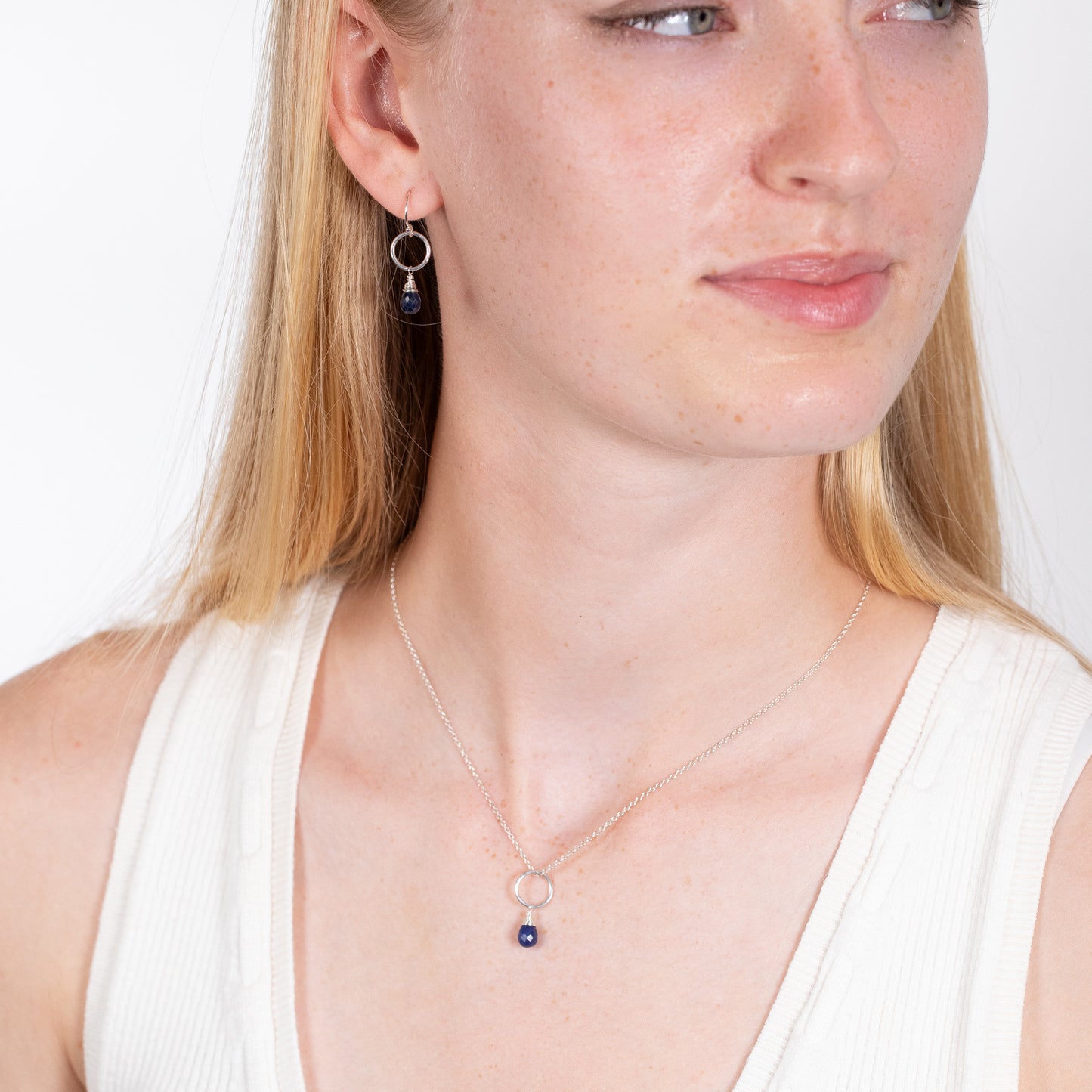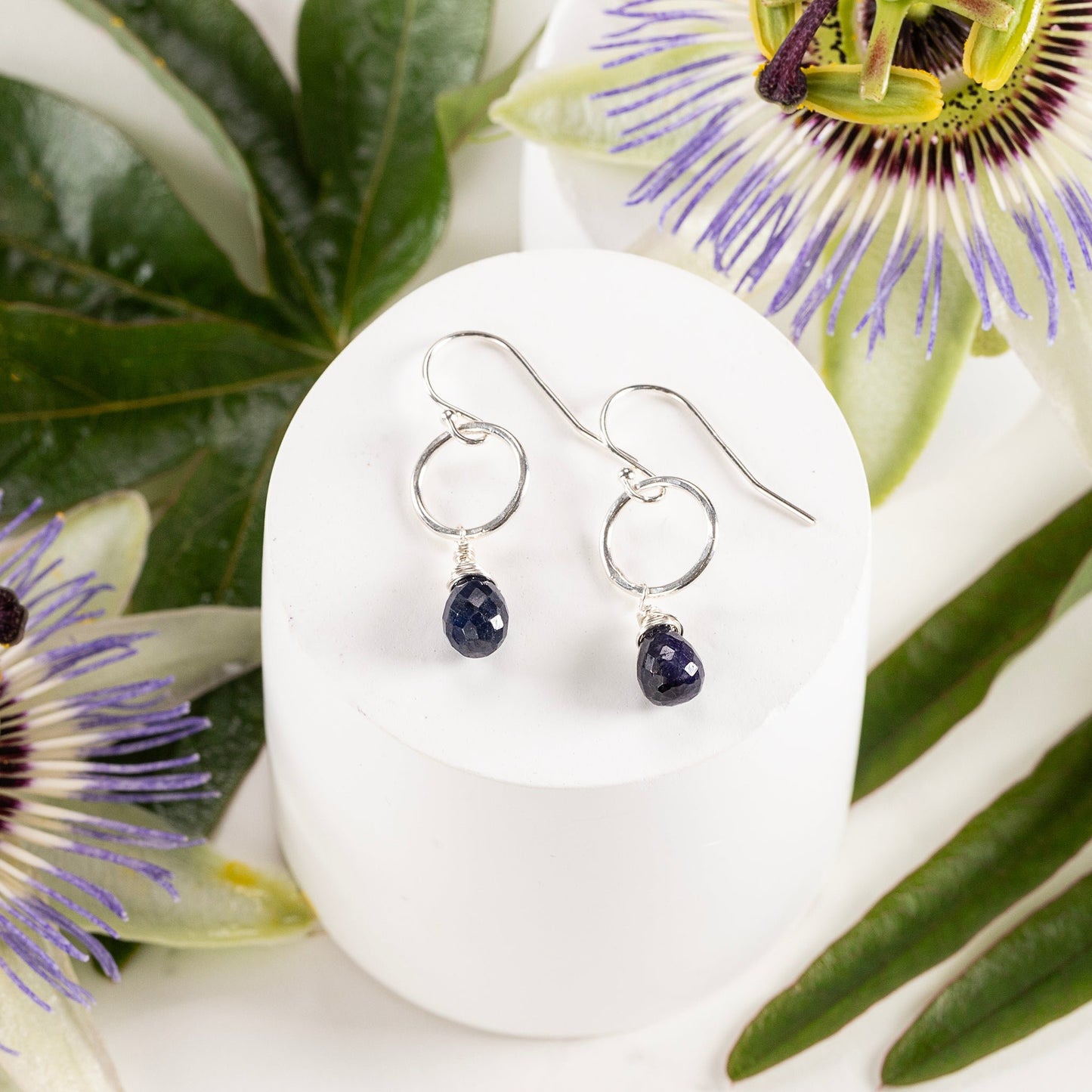 September Birthstone Circle Earrings - Sapphire - Silver & Gold