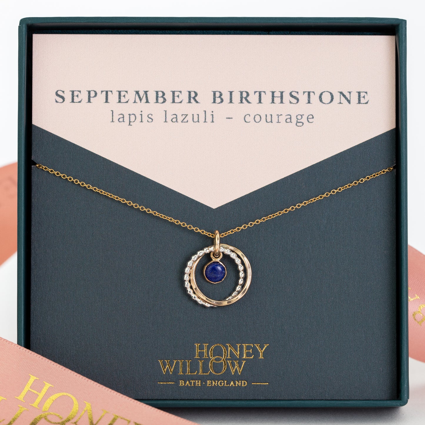 Celebrate her September birthday with a meaningful double link necklace handmade with lapis lazuli, which is a birthstone for September.