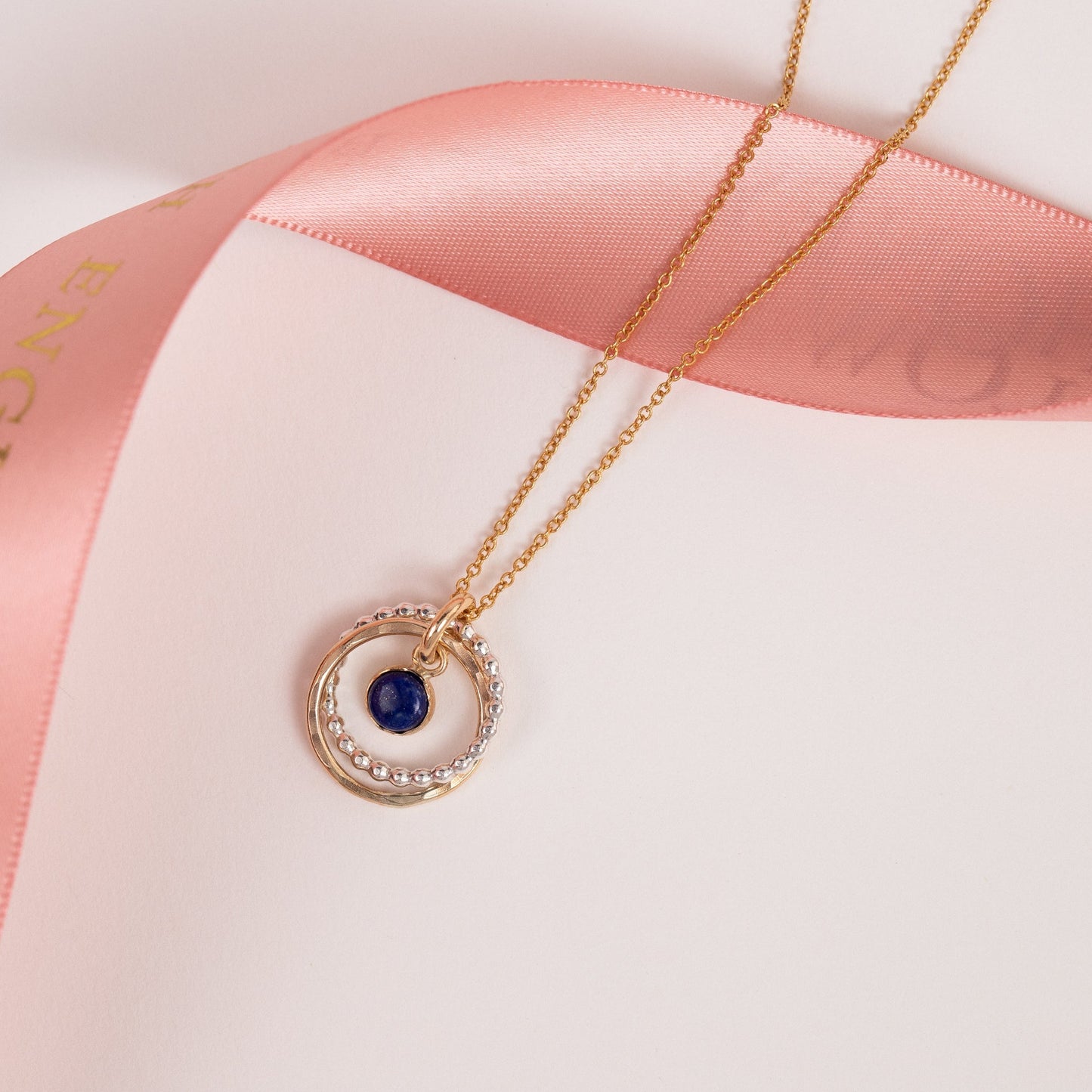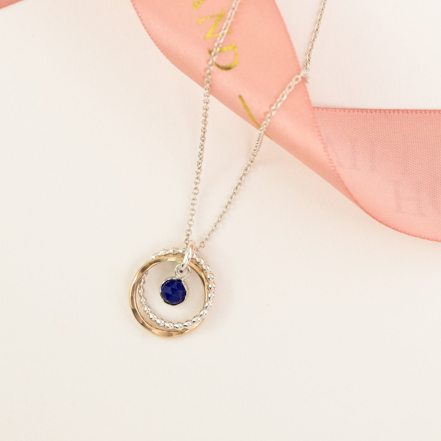 September Birthstone Double Link Necklace - Lapis Lazuli - Silver & Gold