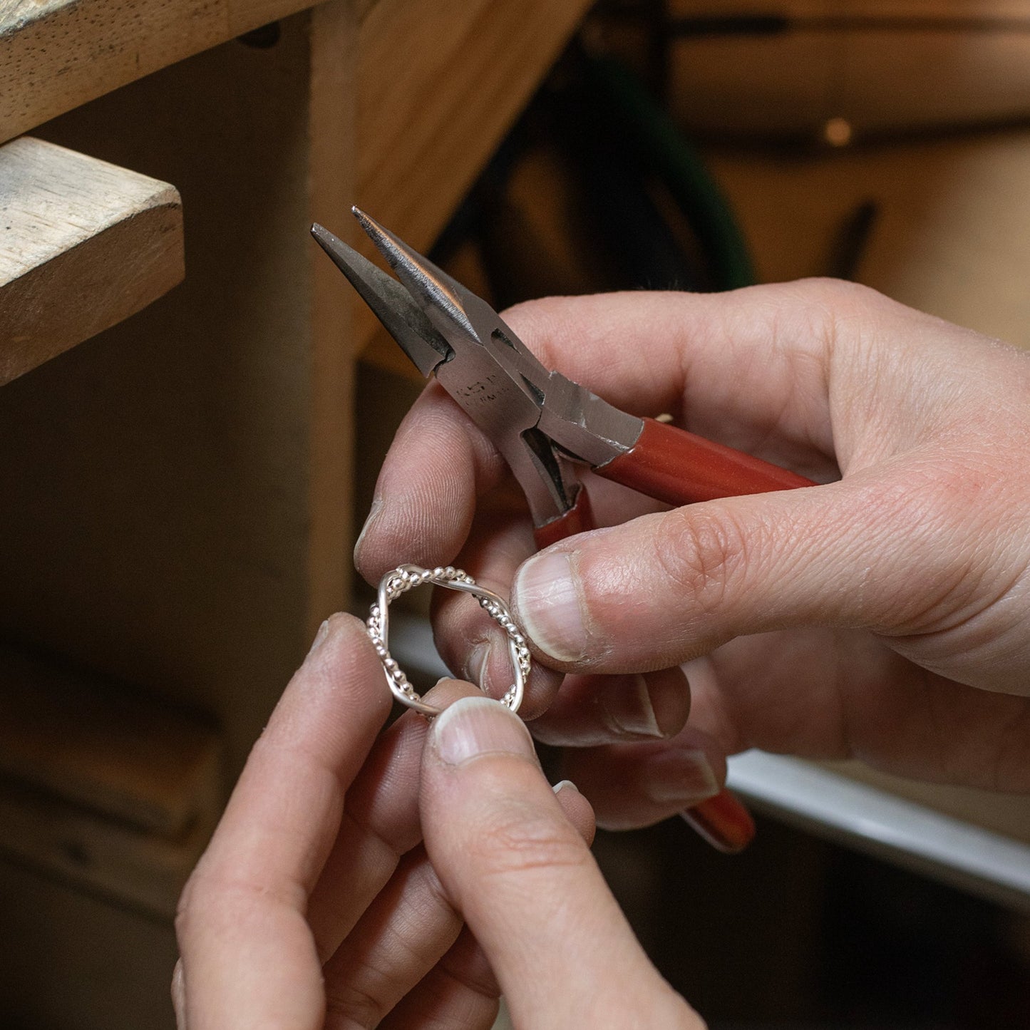 Circles symbolise infinite love, strength, unity and protection. Two lengths of wire are entwined together and linked for a lifetime® in a circle.