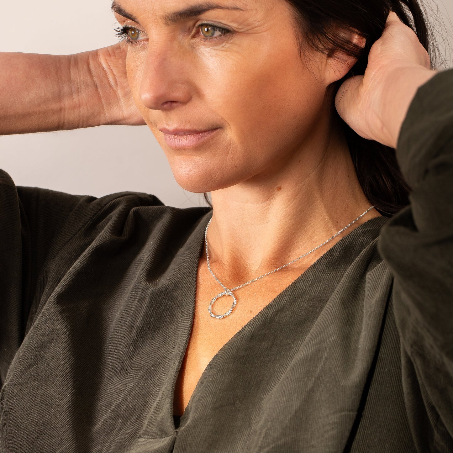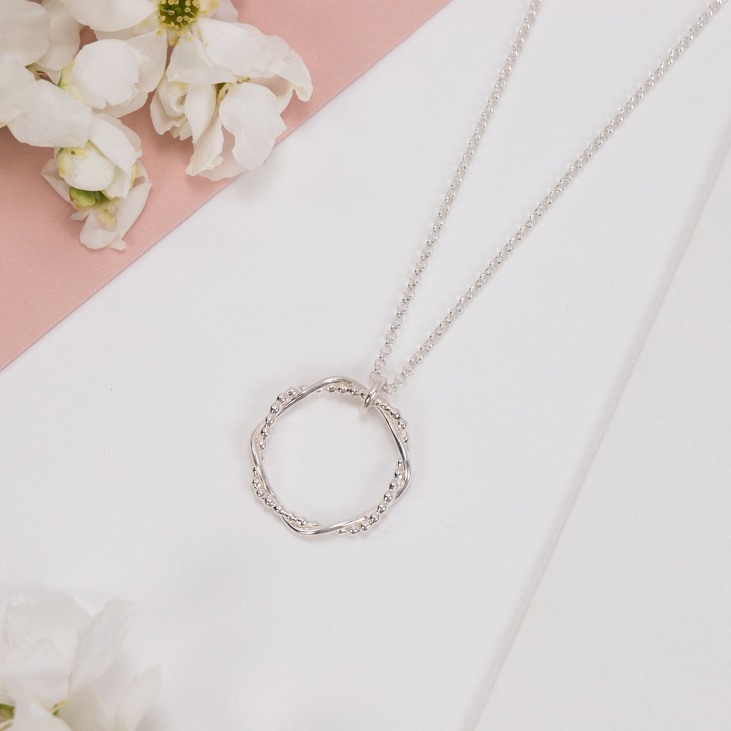 Celebrate your bond with an entwined silver halo necklace.