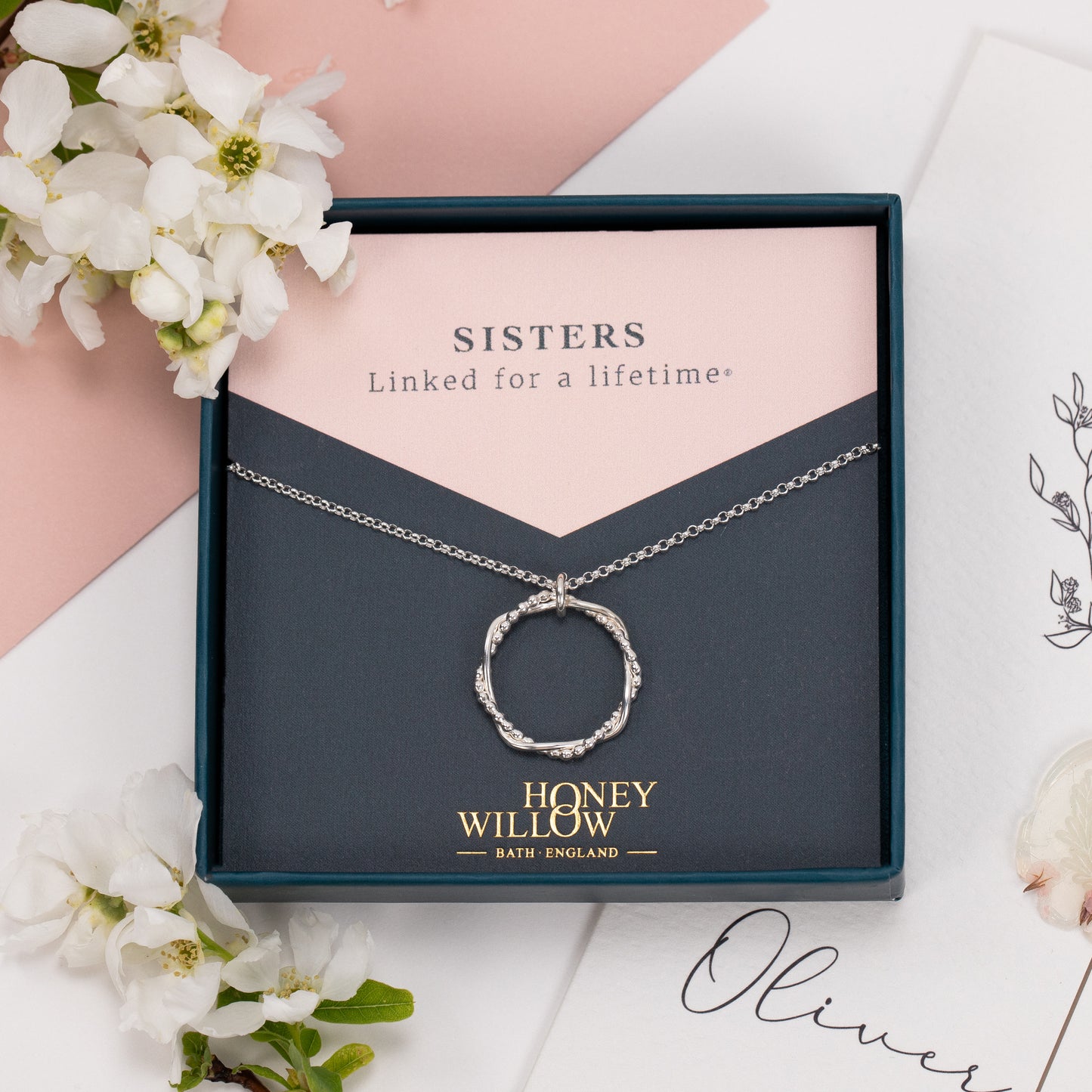 Sisters Necklace - Entwined Halo - Linked for a Lifetime - Silver