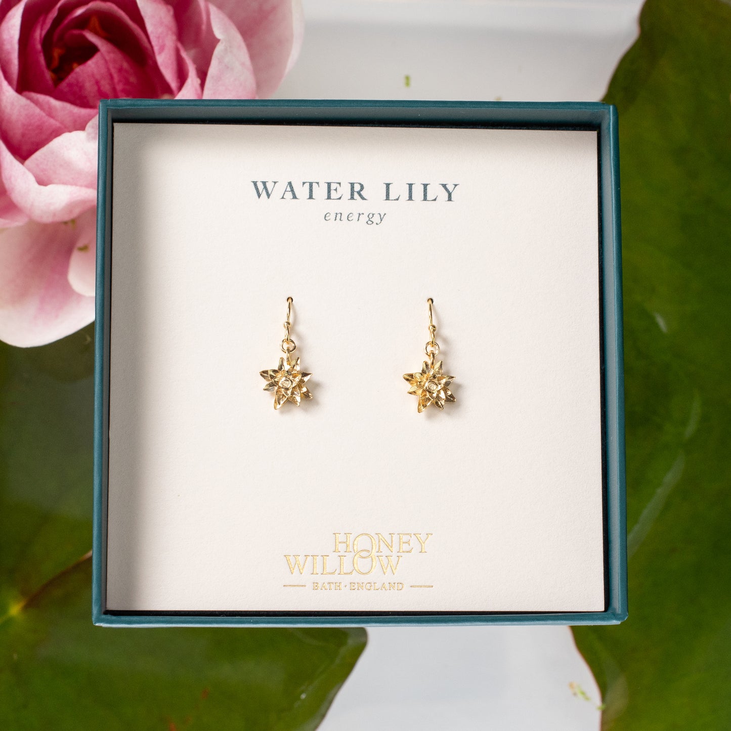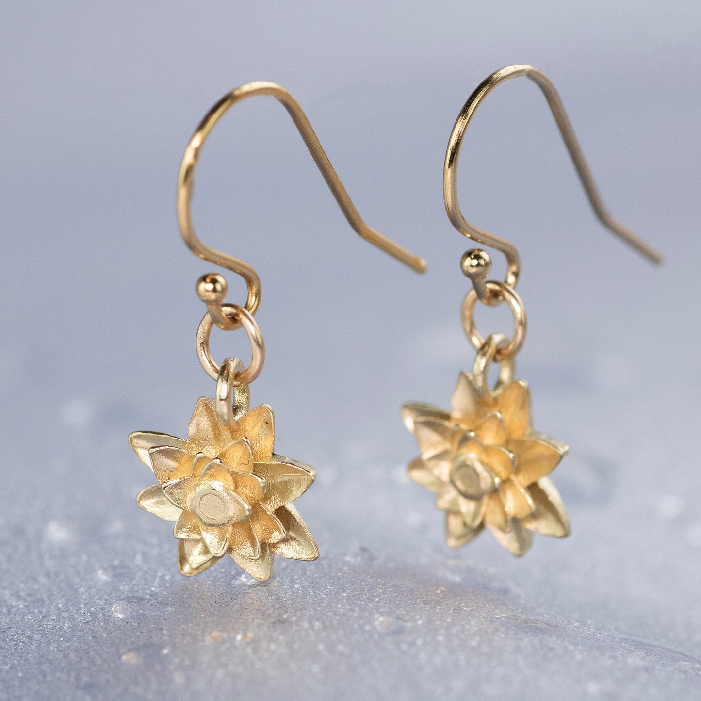 Waterlily Flower Earrings - Energy - 9kt Gold