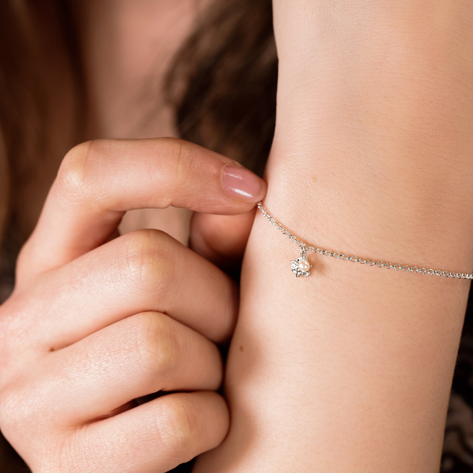 Celebrate your 10th anniversary with a dainty silver daffodil flower bracelet.