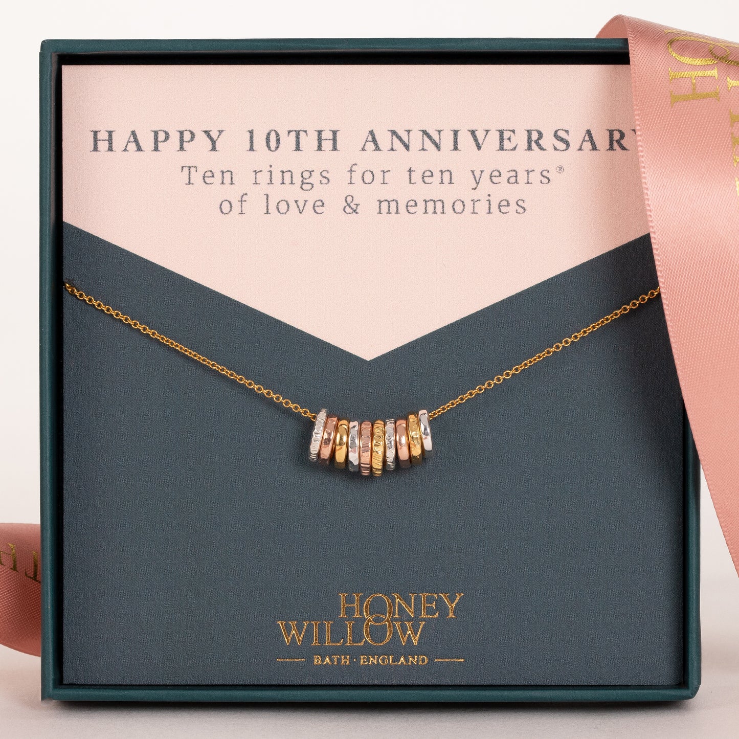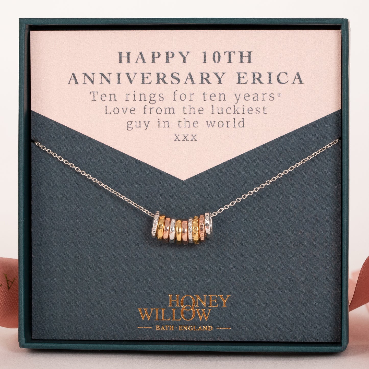 Give your loved one an original ten rings for ten years® necklace, designed and handmade in England with love and care for over a decade.