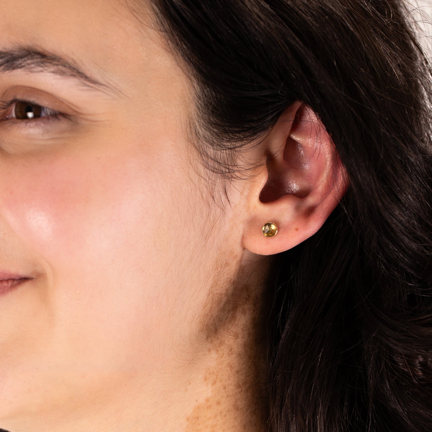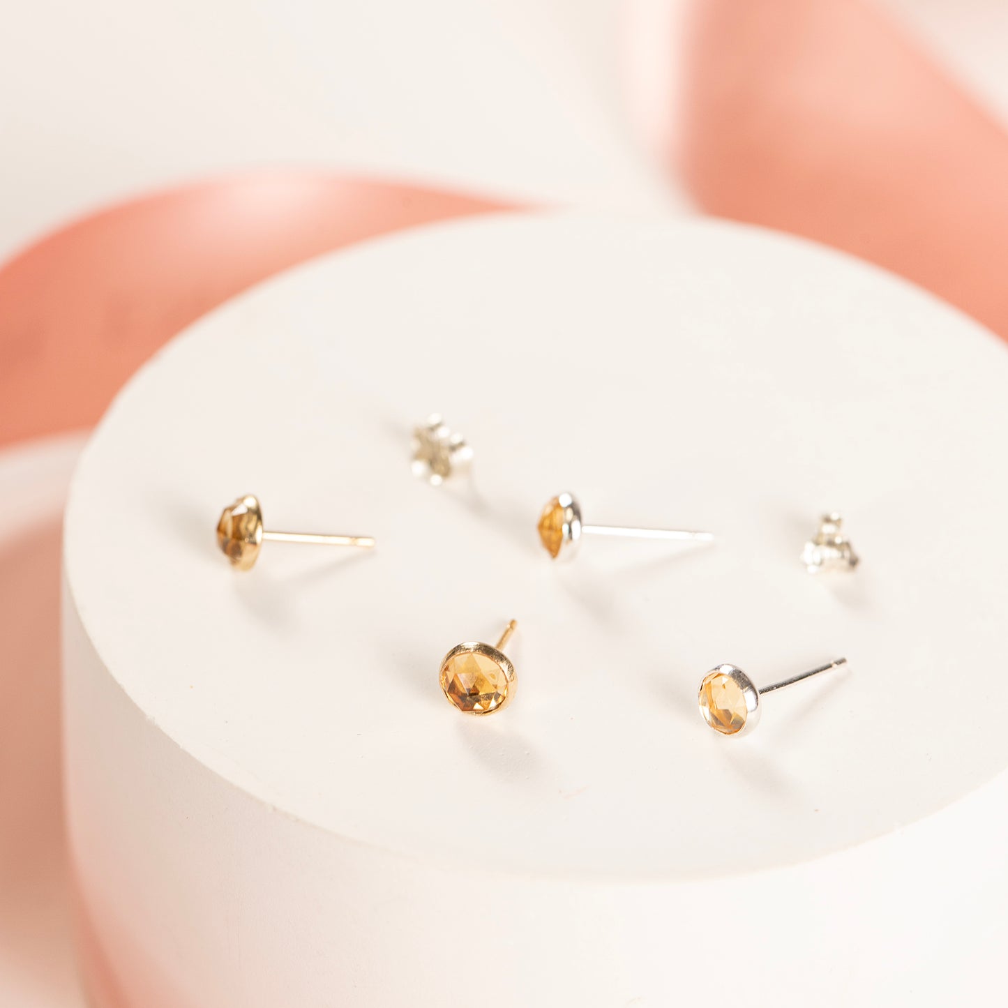 13th Birthday Gift - Citrine Stud Earrings - Silver & Gold