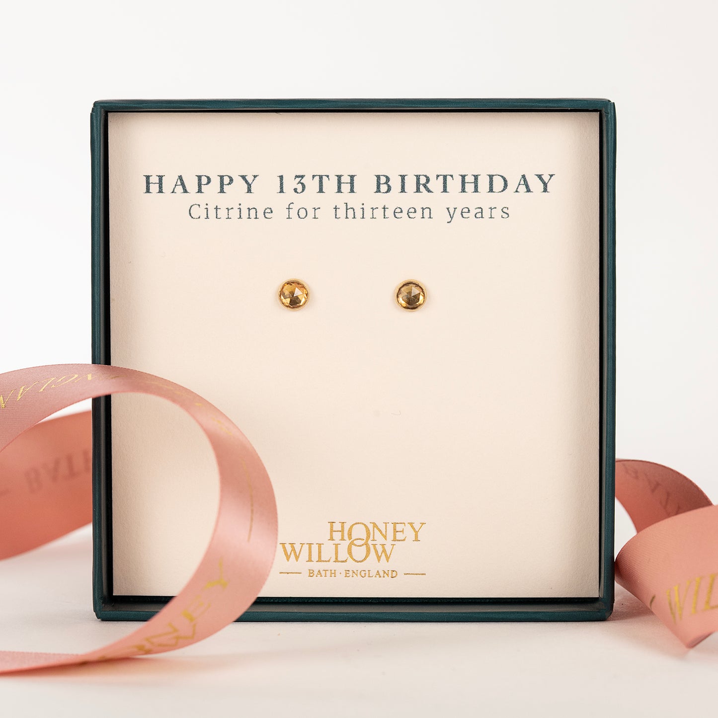 Celebrate her thirteenth birthday with citrine stud earrings.