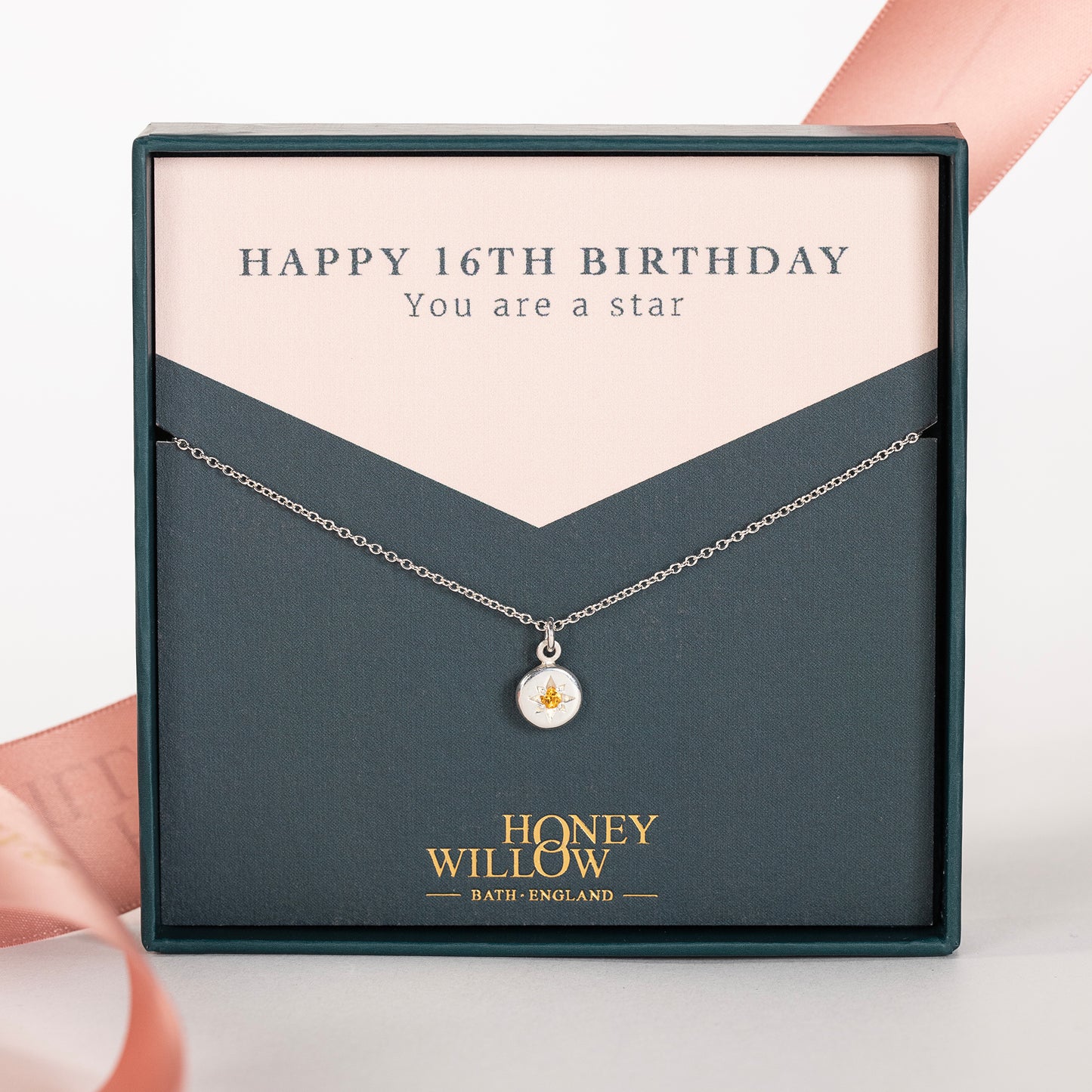 Celebrate her 16th birthday with a dainty sterling silver pendant, star set with her birthstone.