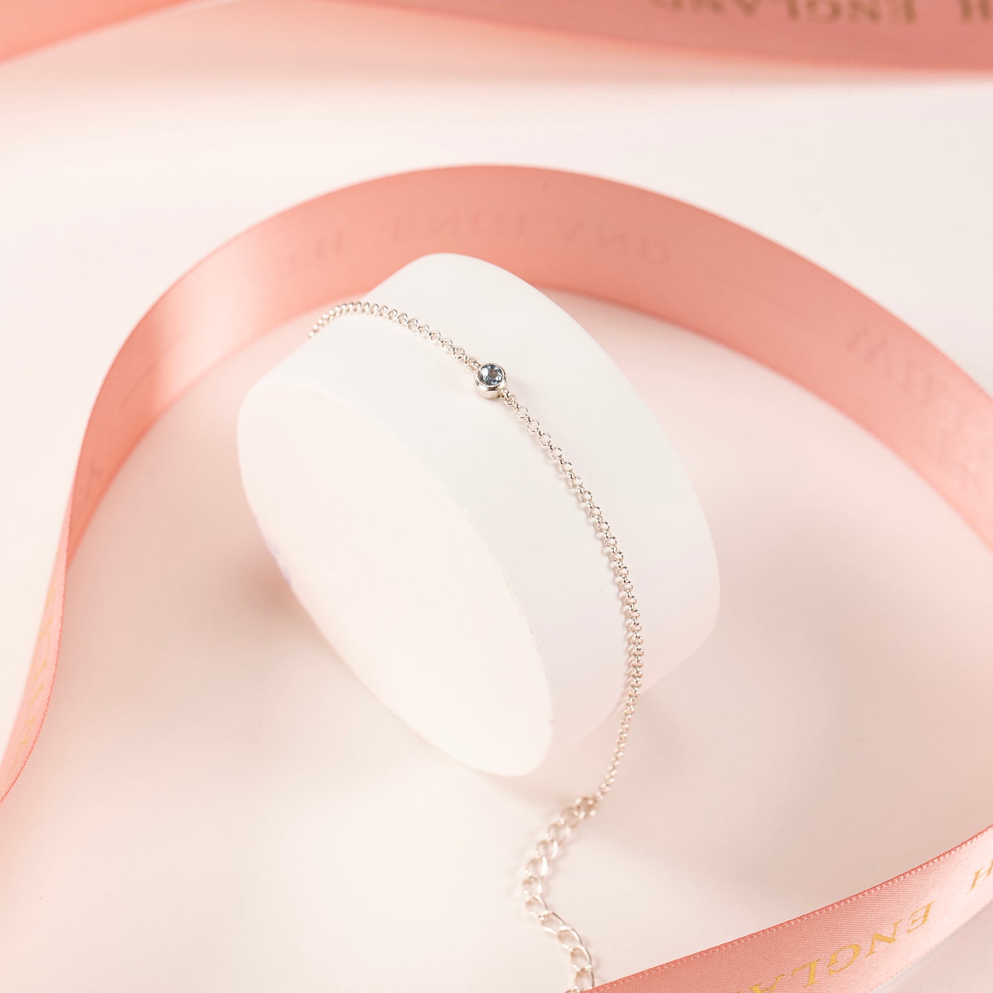 19th Birthday Gift - Aquamarine Solitaire Bracelet - Silver