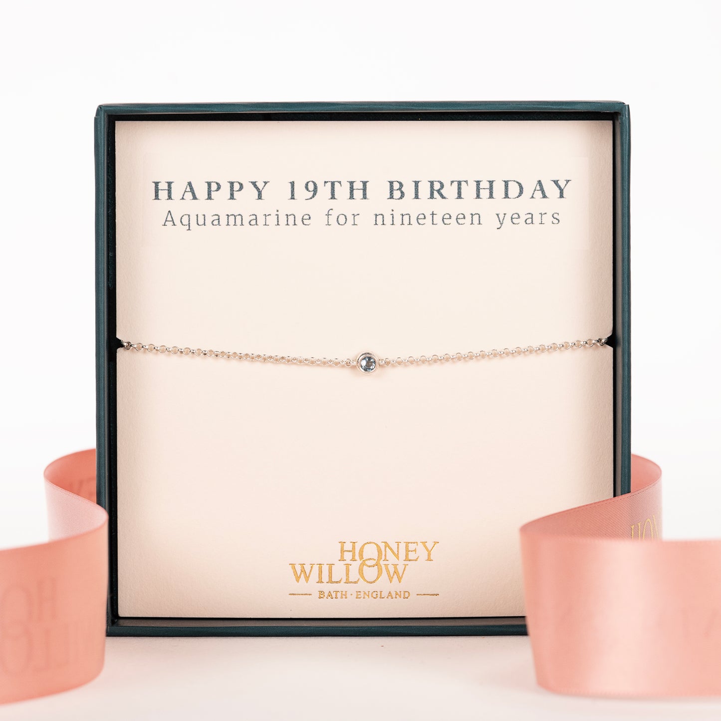 Celebrate her 19th birthday with a dainty silver bracelet, handmade with a tiny, genuine aquamarine.
