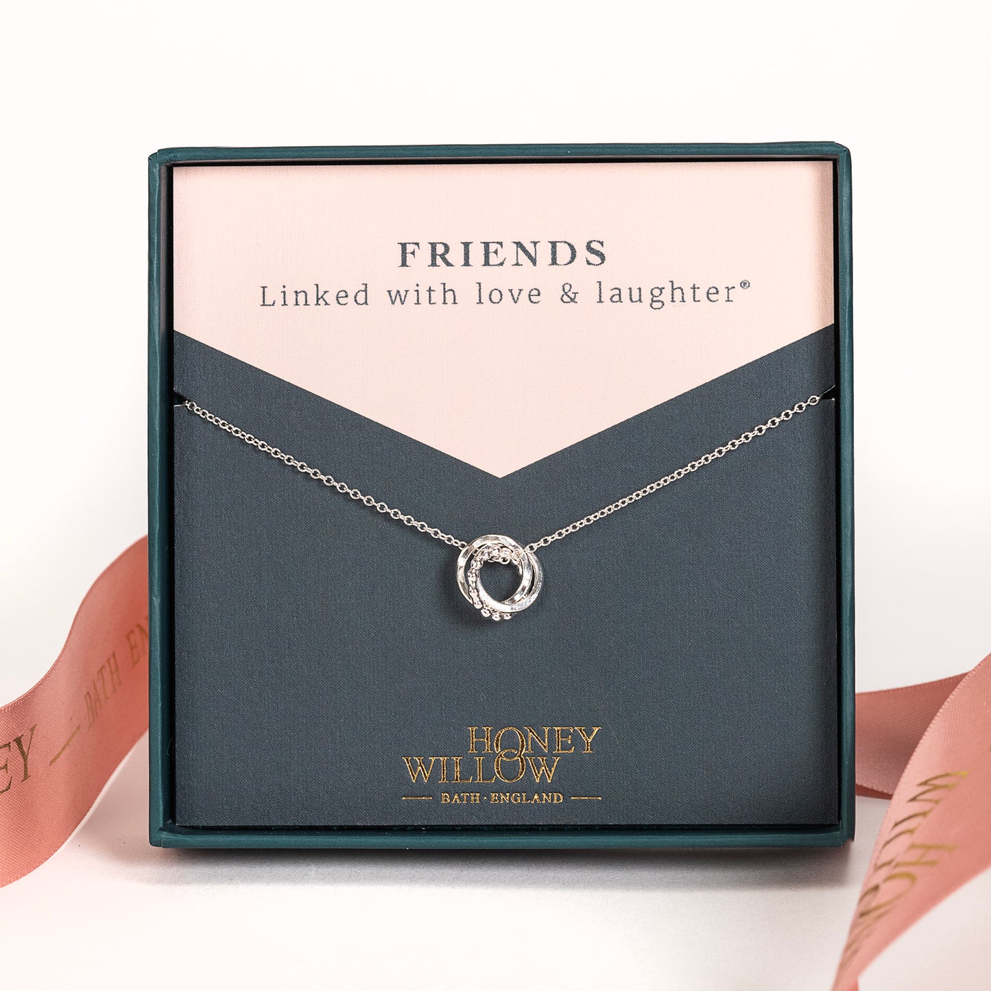 Give your friend the original linked with love and laughter® love knot necklace, designed and handmade in Bath, England. Honey Willow is a family business, founded in 2010.