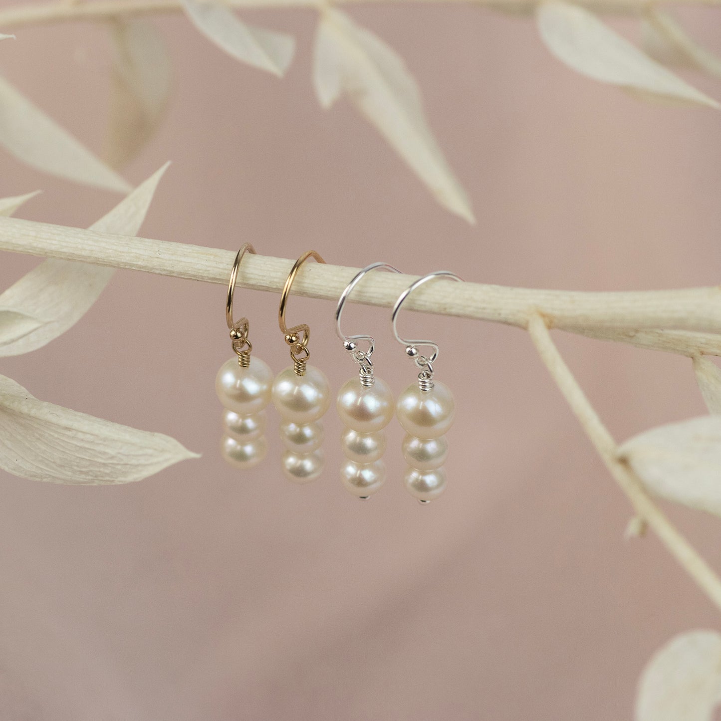 With three petite freshwater pearls and either sterling silver or 14k gold-fill.