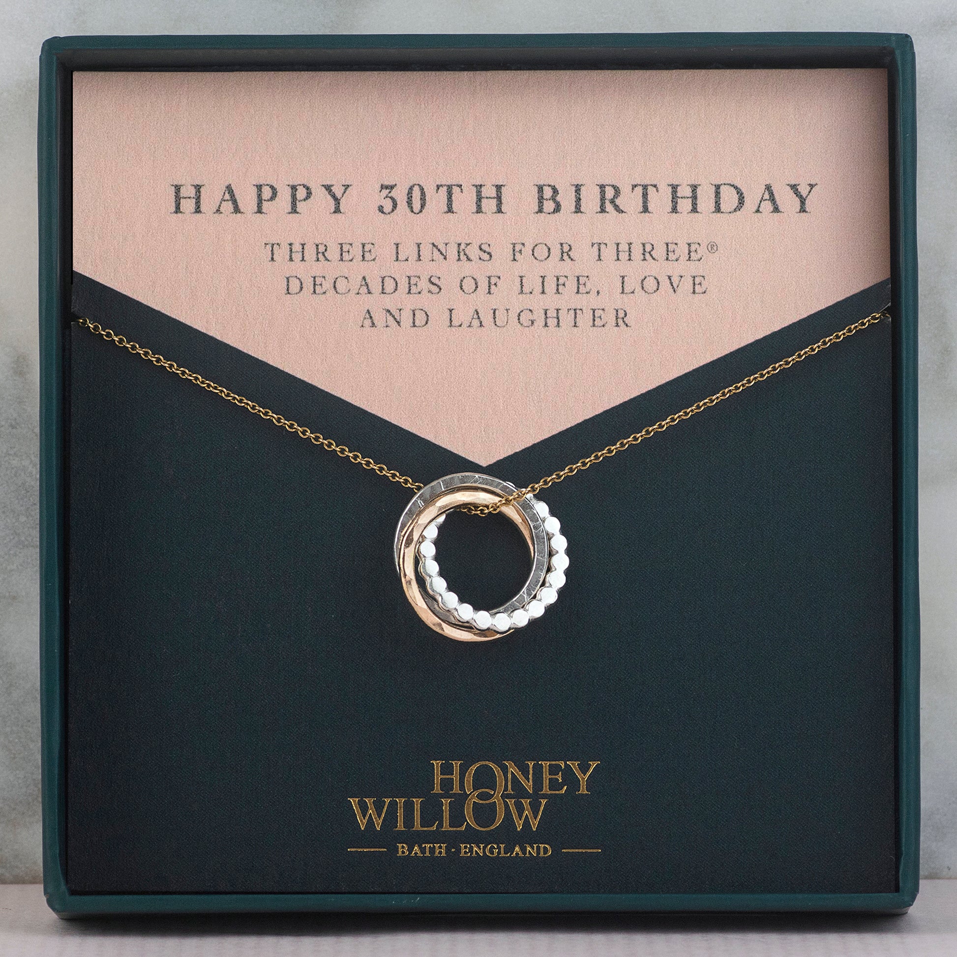 30th Birthday Necklace - The Original 3 Links for 3 Decades Necklace - Silver & Gold