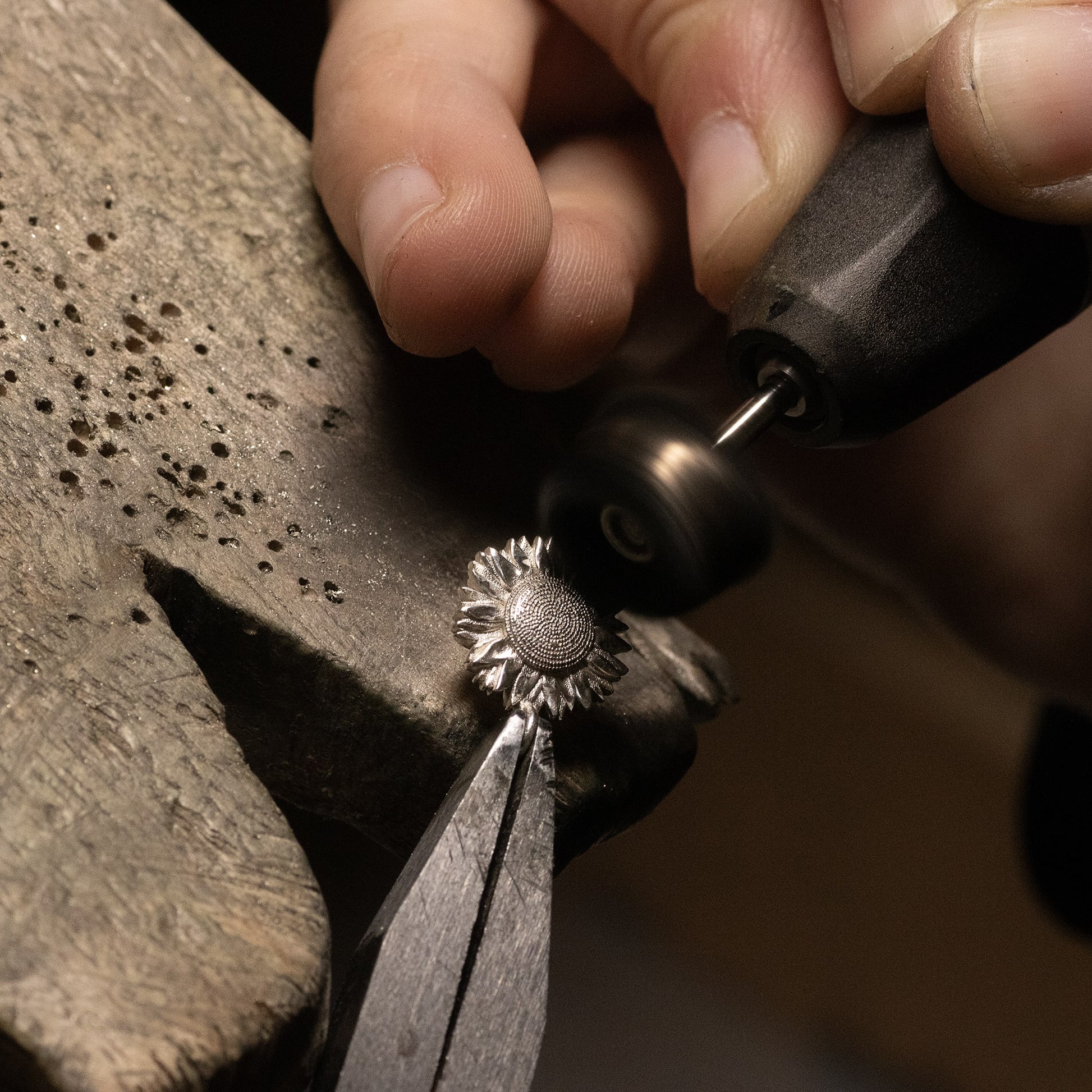 The sunflower pendant is 1cm in diameter. It is made with recycled silver.
