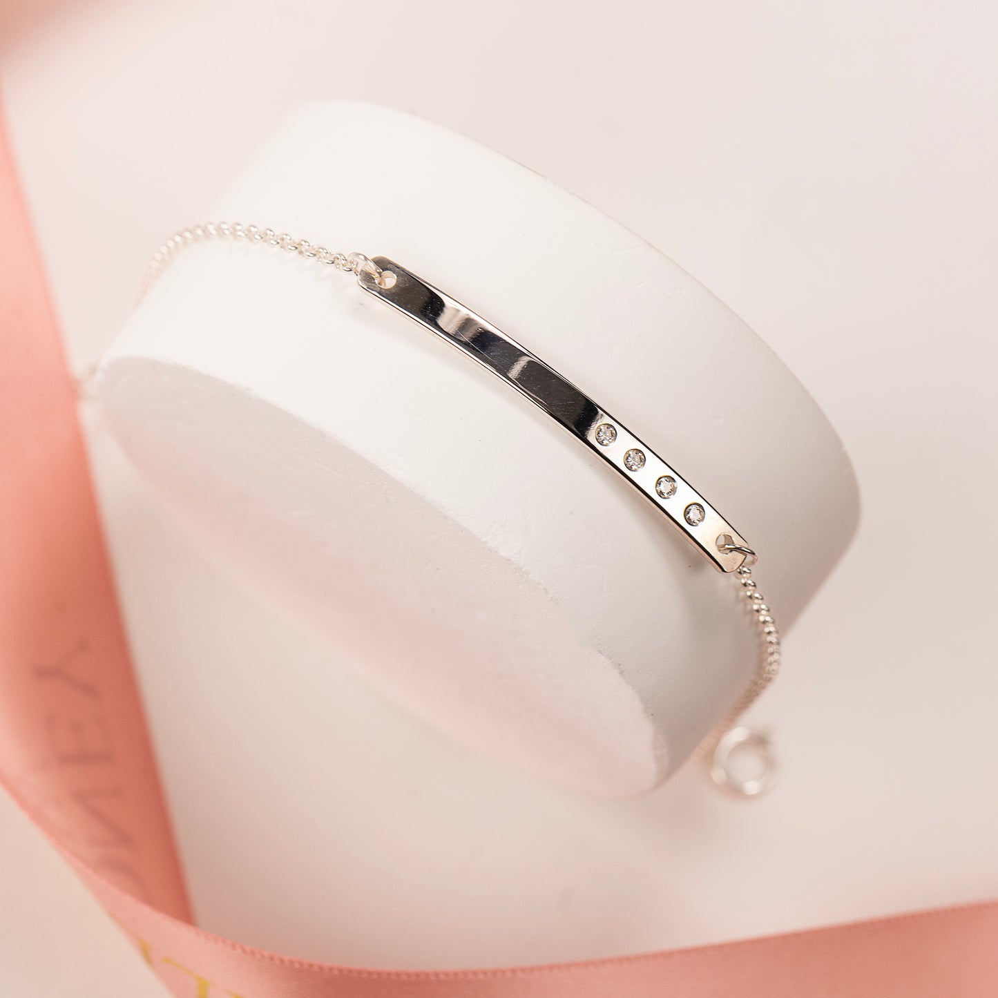 40th Birthday Gift - Diamond Bar Bracelet - 4 Diamonds for 4 Decades - Silver