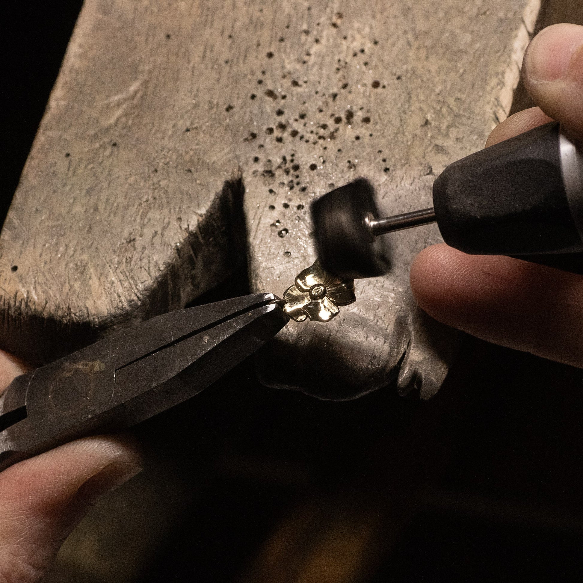 Celebrate your 50th anniversary with a dainty violet flower necklace, made with recycled 9kt gold.