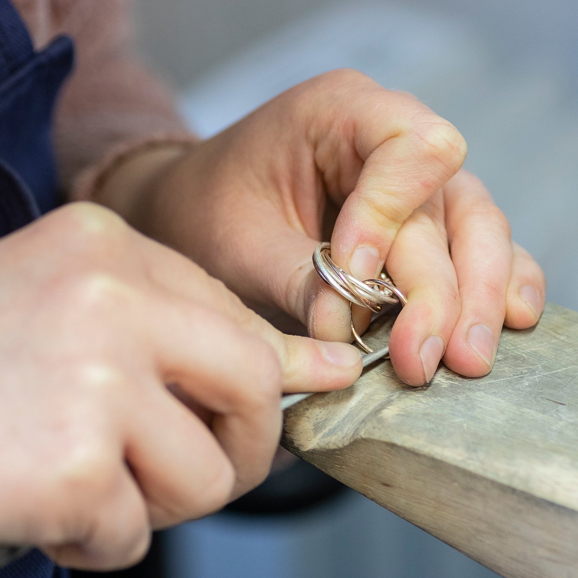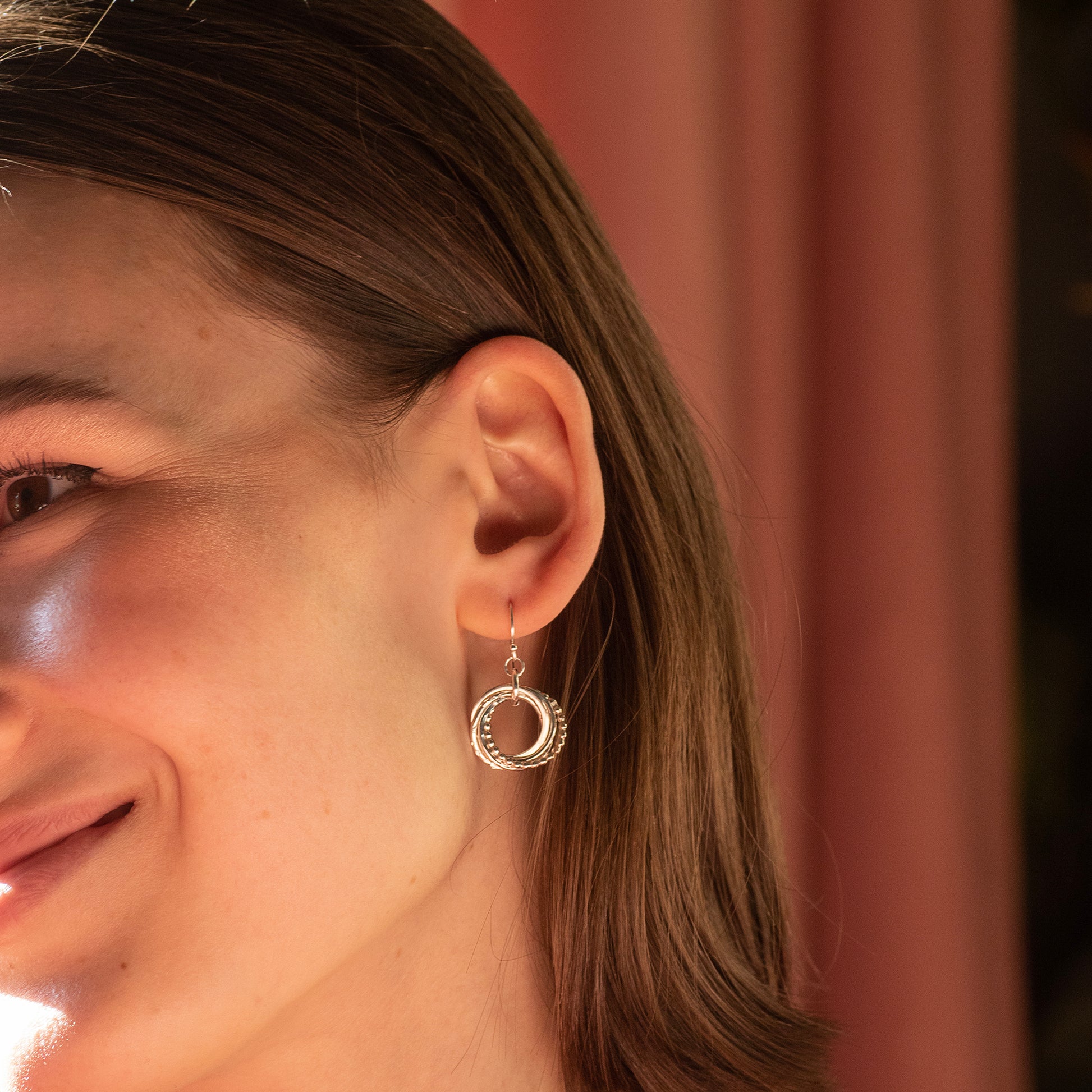 Circles symbolise infinite love, strength, protection and unity. Five circles are linked on each earring. All the links are given different textures to represent each decade.