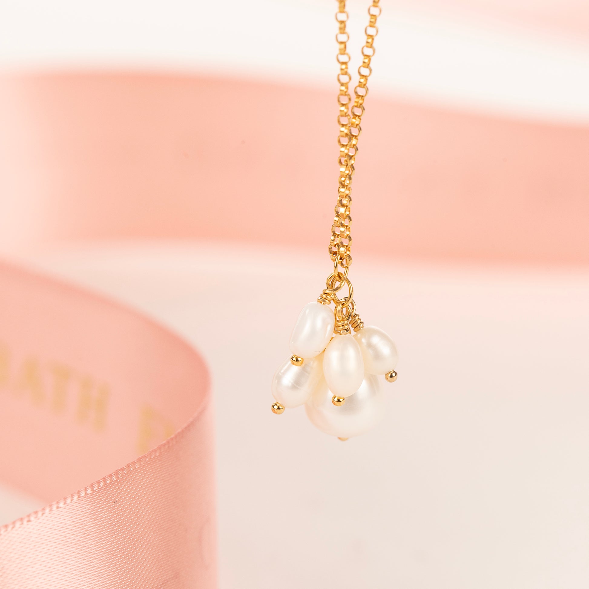 50th Birthday Pearl Cluster Necklace - 5 Pearls for 5 Decades - Silver & Gold