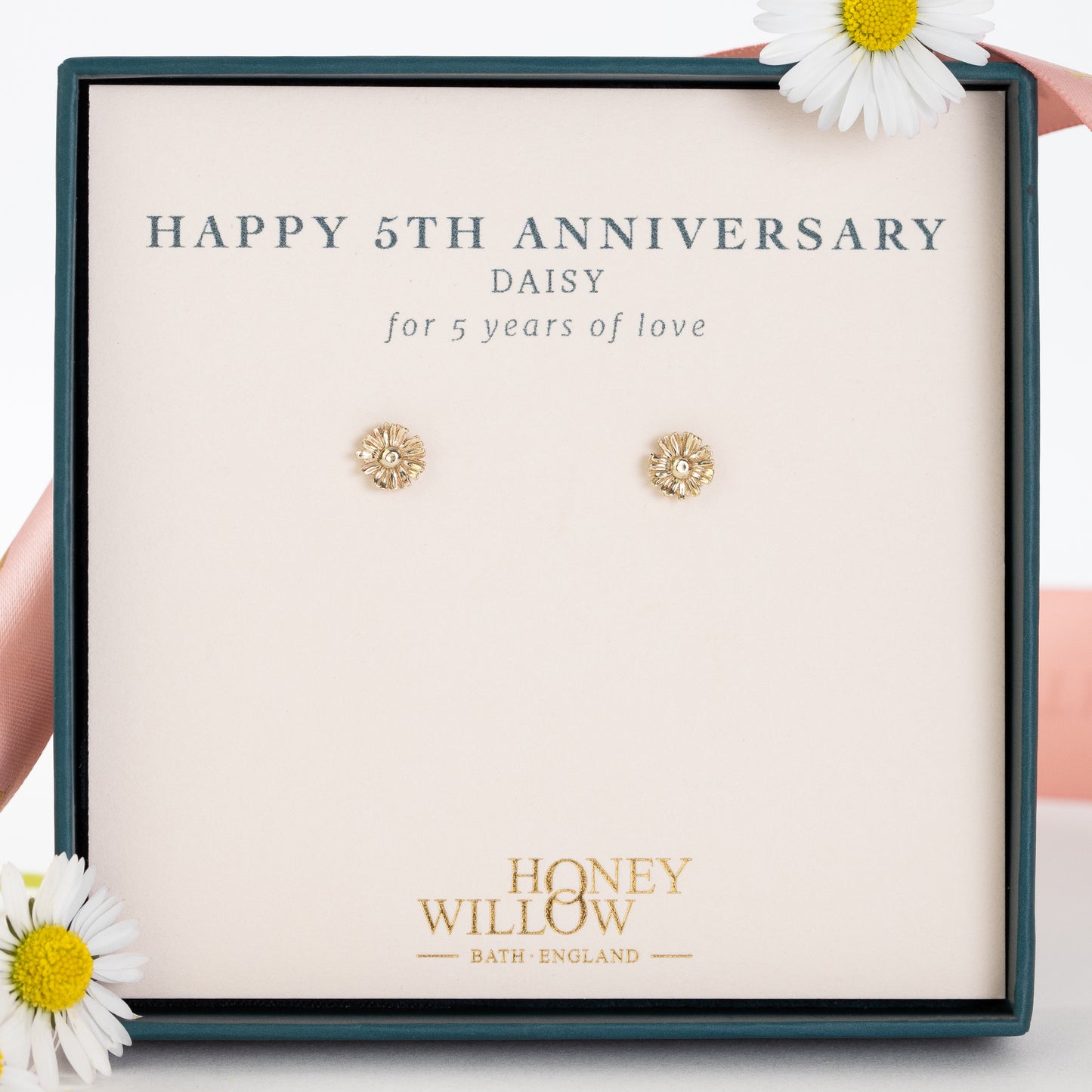 5th Anniversary Gift - Daisy Flower Stud Earrings