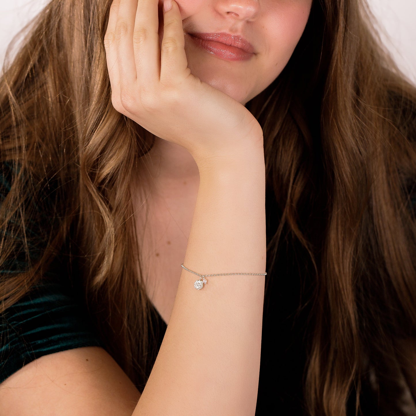 Celebrate your 5th anniversary with a dainty silver daisy flower bracelet.