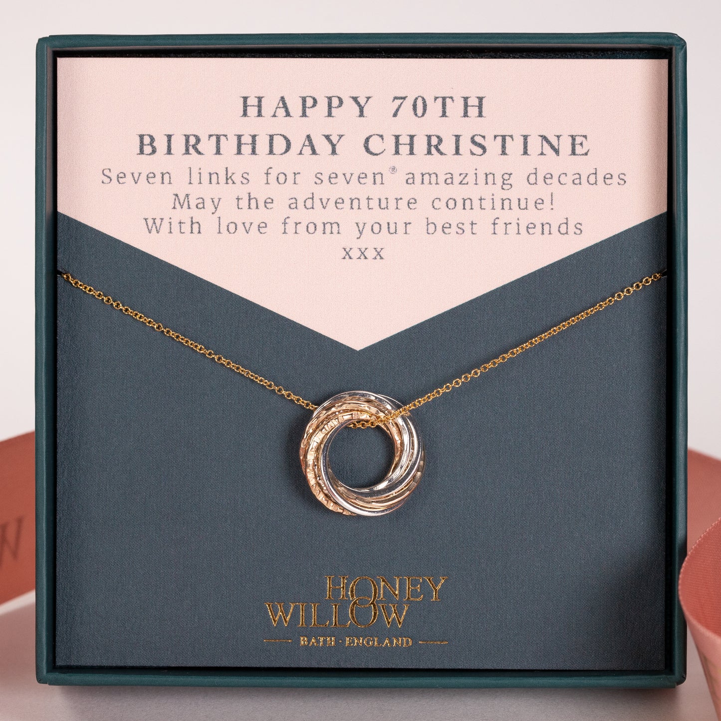 70th Birthday Necklace - The Original 7 Links for 7 Decades - Petite Silver & Gold