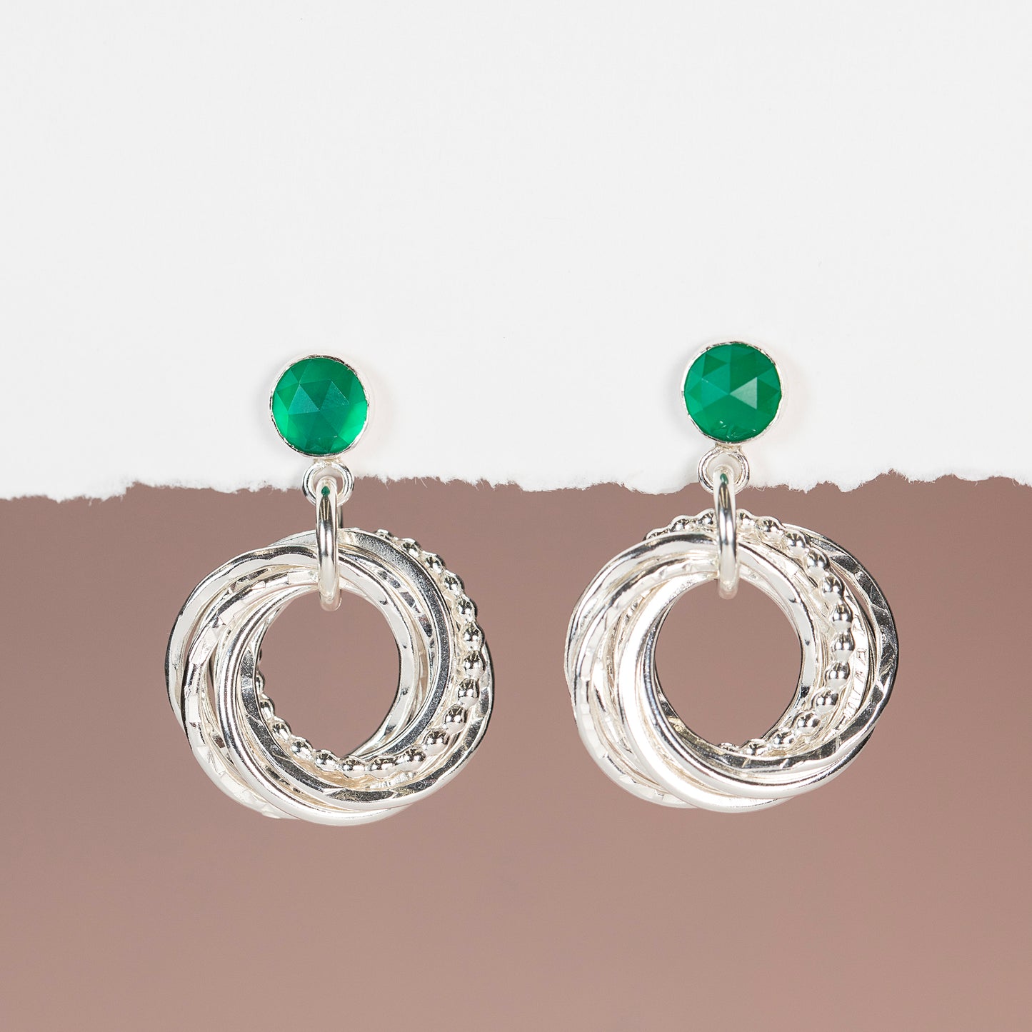 Circles symbolise infinite love, strength, protection and unity. Eight circles are linked on each earring to symbolise her eight decades. You choose her birthstone, see image 3 for an example.