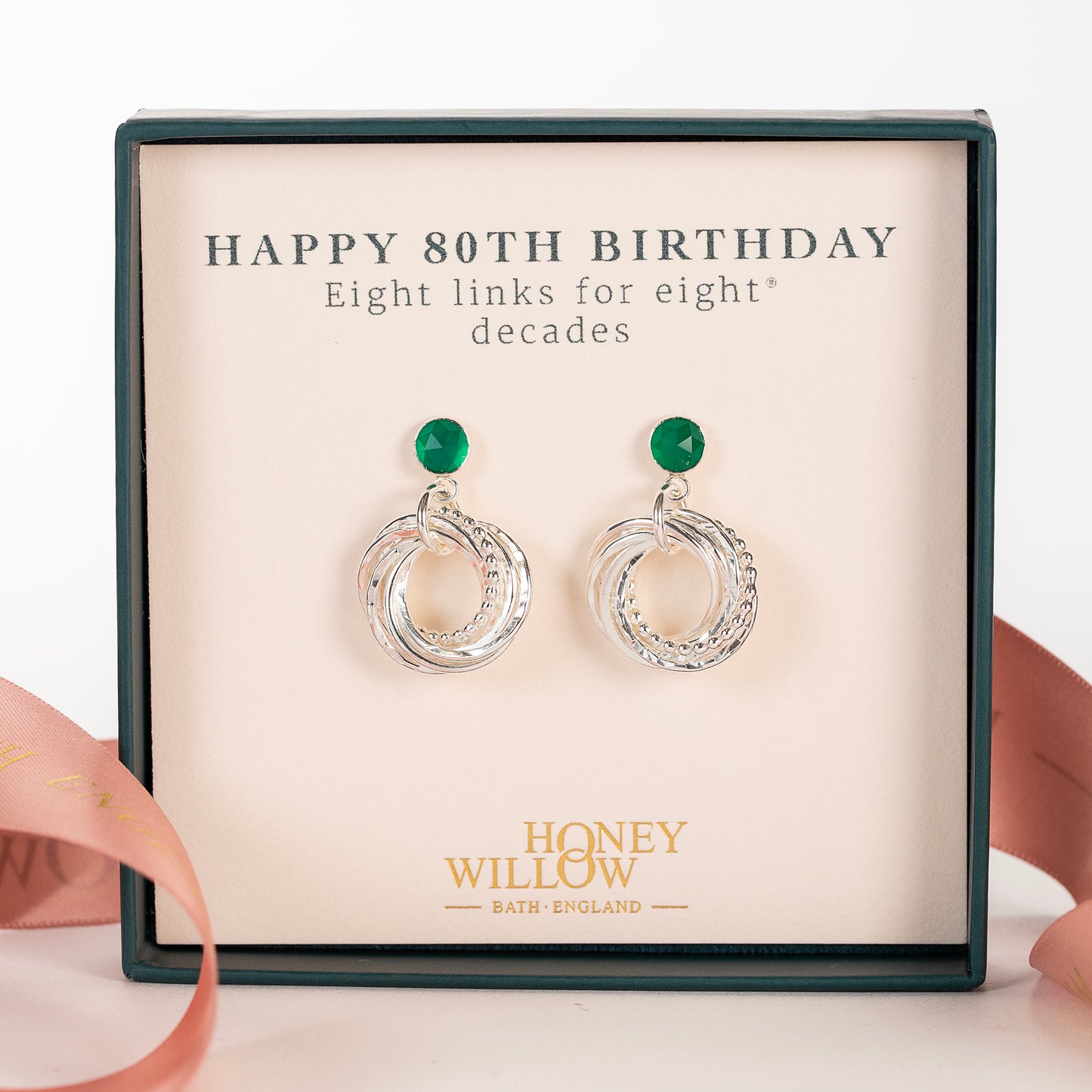 80th Birthday Birthstone Earrings - The Original 8 Links for 8 Decades - Petite Silver