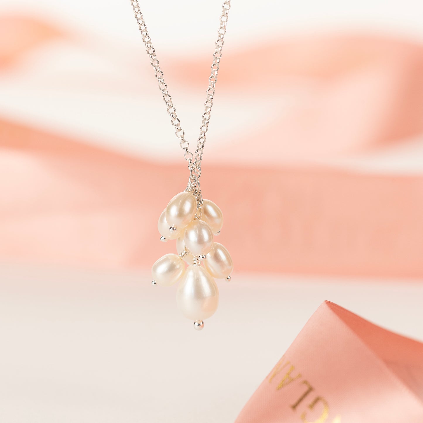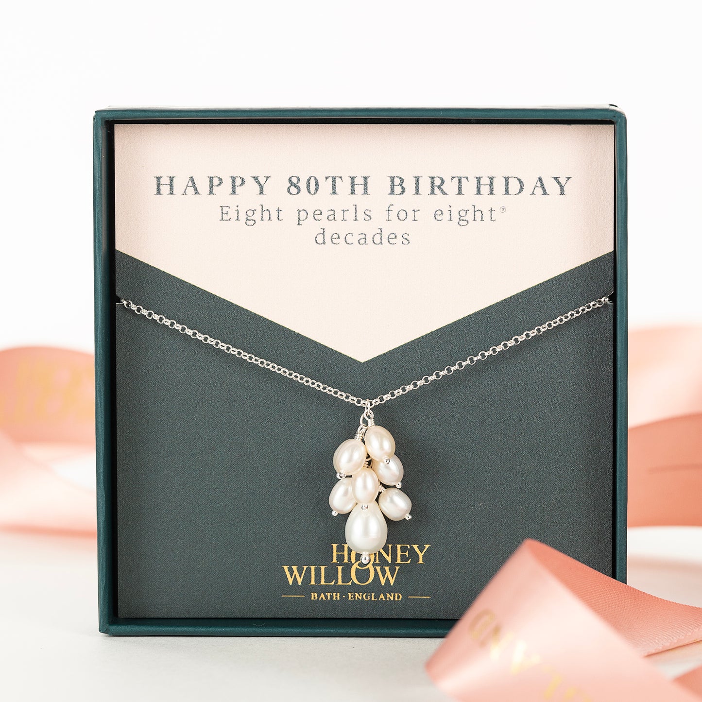 80th Birthday Pearl Cluster Necklace - 8 Pearls for 8 Decades - Silver & Gold
