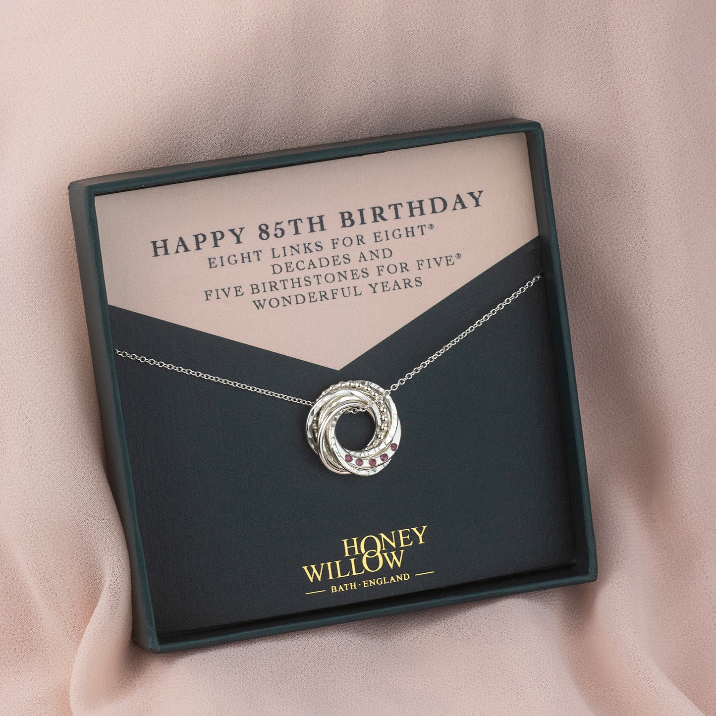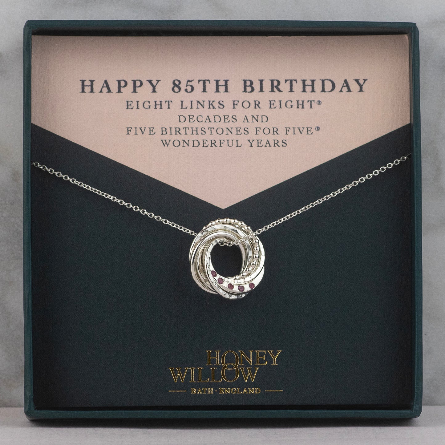 Celebrate her 85th birthday with a necklace handmade with eight links for eight® decades and five birthstones for five® wonderful years.