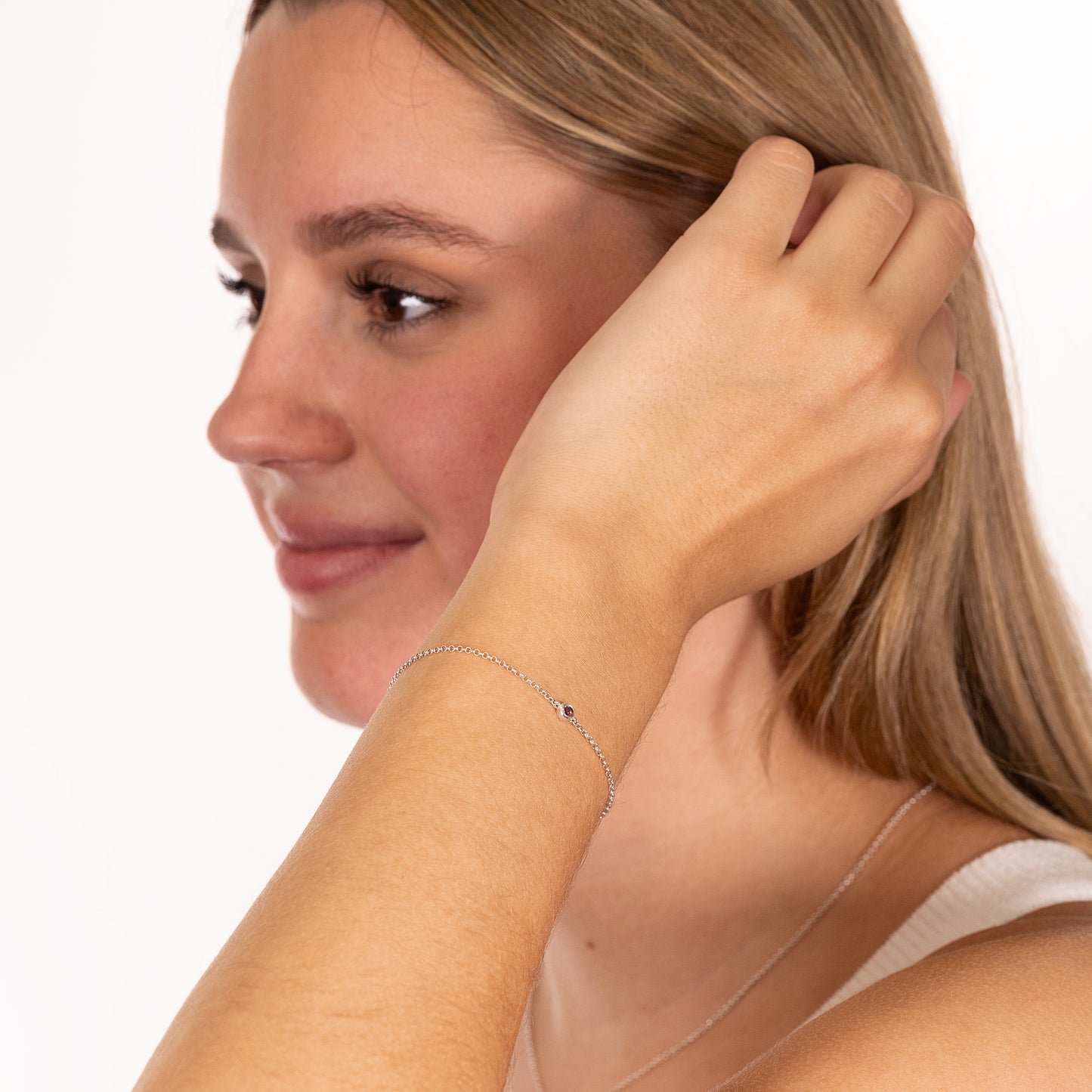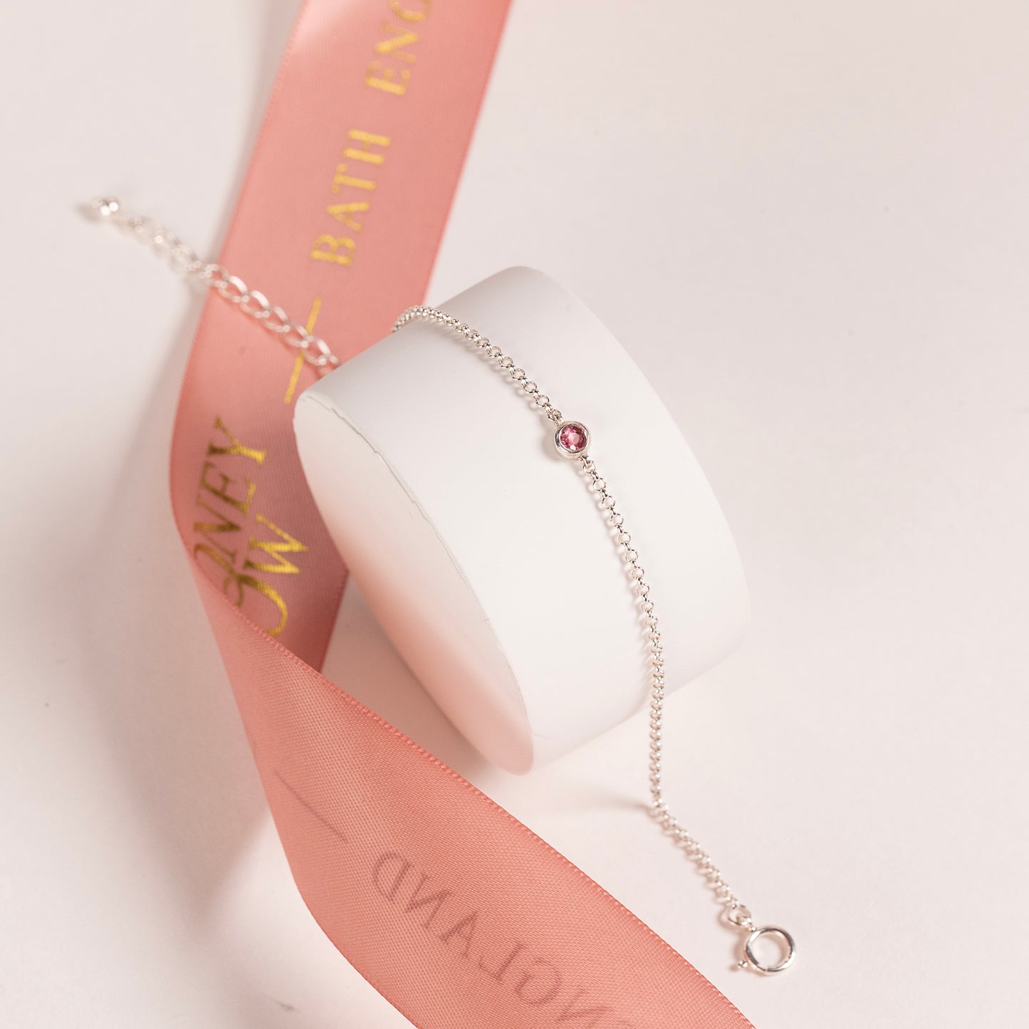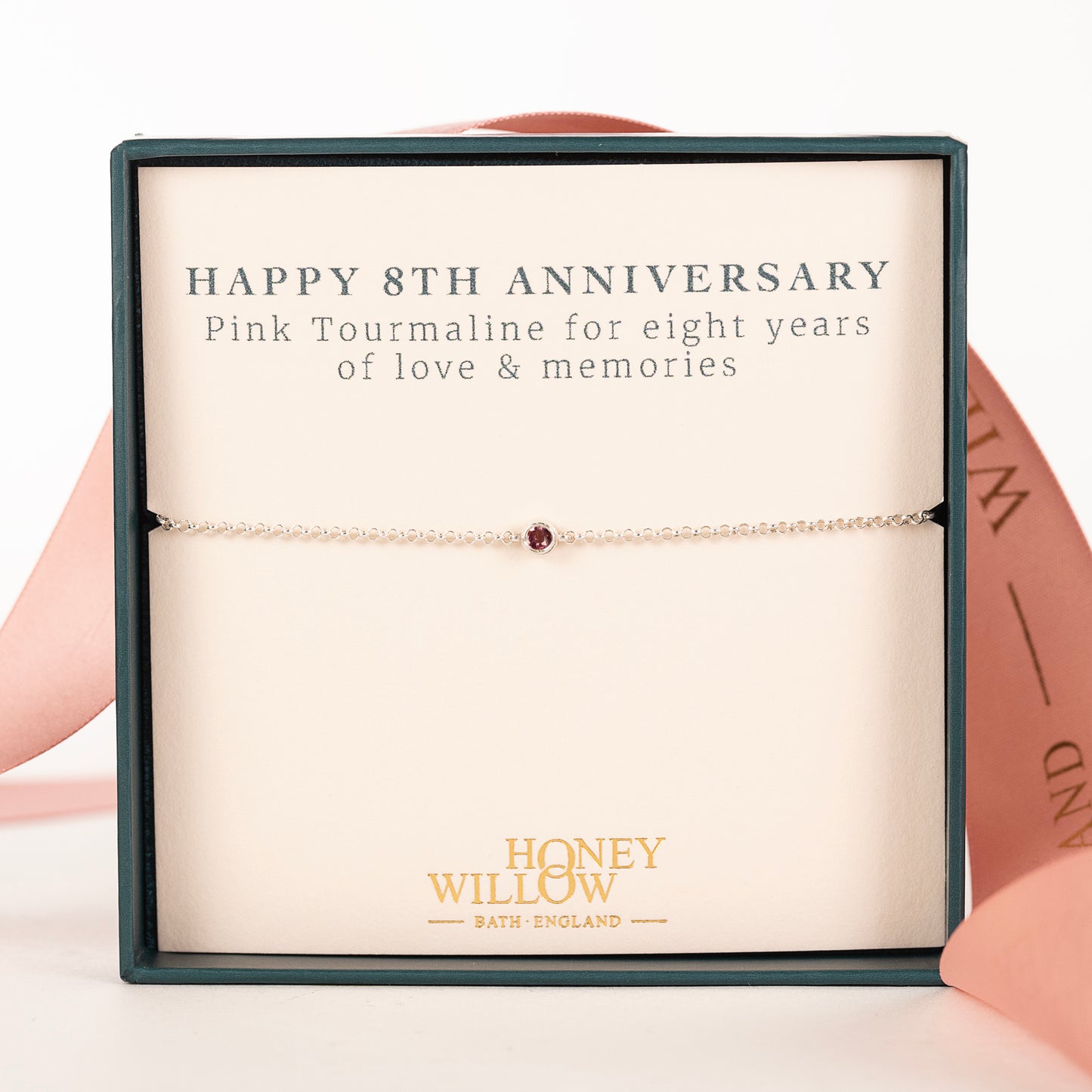 Celebrate your 8th anniversary with a dainty pink tourmaline solitaire bracelet.