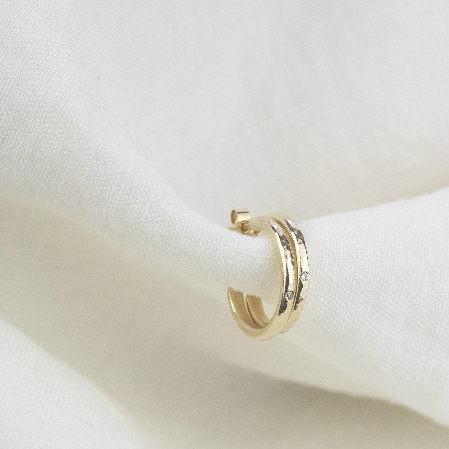These luxe 9kt gold hoops are 1.5cm in diameter and each is set with a tiny conflict-free diamond.