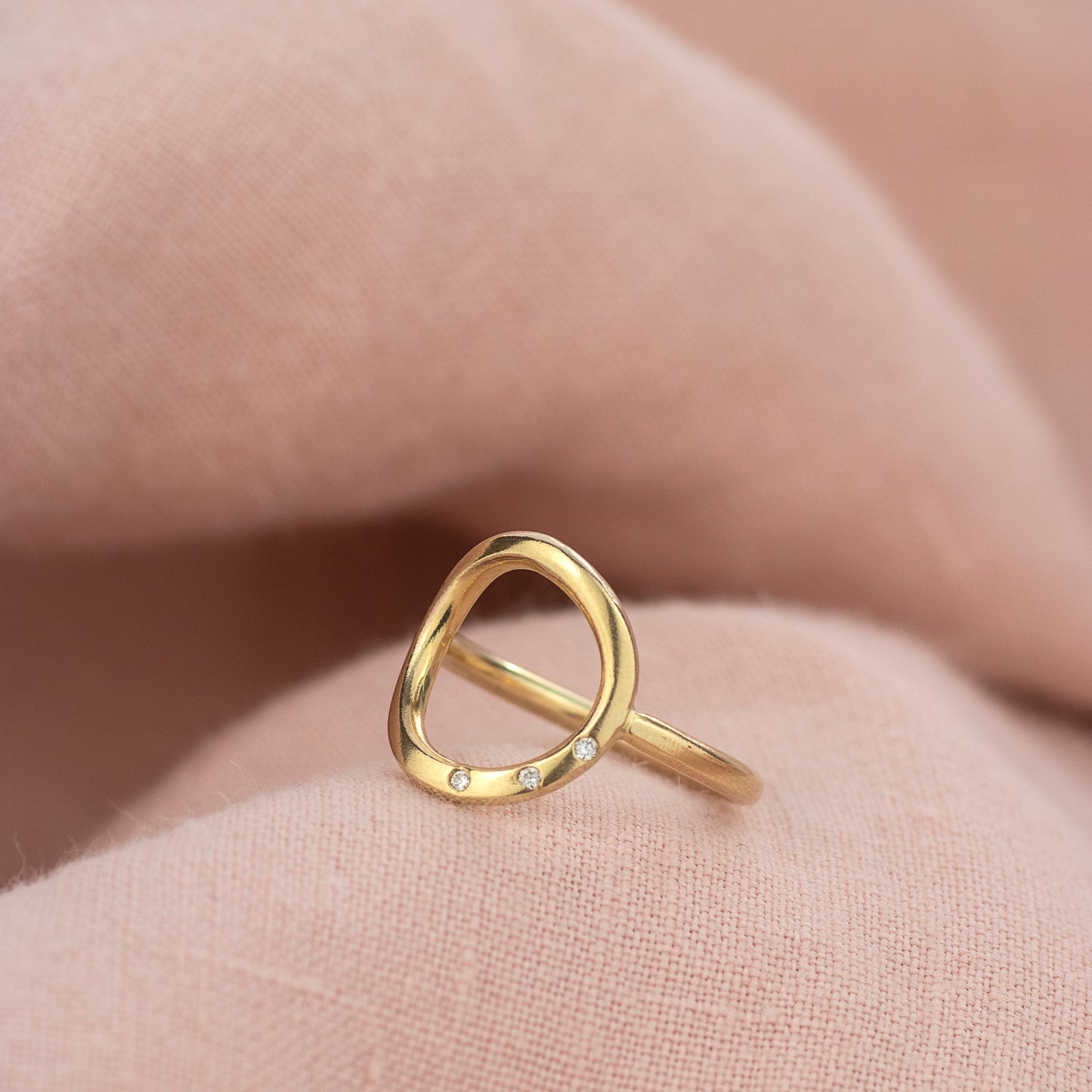 With recycled 9kt gold, which is hallmarked by the London Assay Office. We set tiny, certified conflict-free white diamonds into the ring, one to represent each loved one.