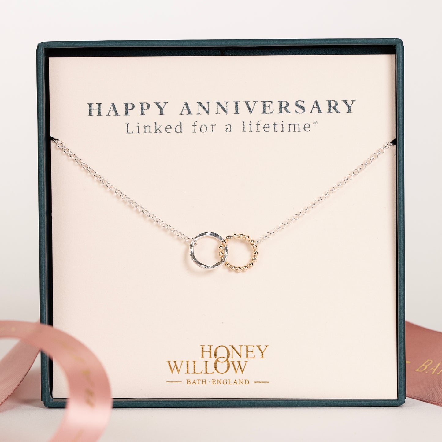 Celebrate your anniversary with a dainty 9kt gold and silver necklace, symbolising that you are linked for a lifetime®.