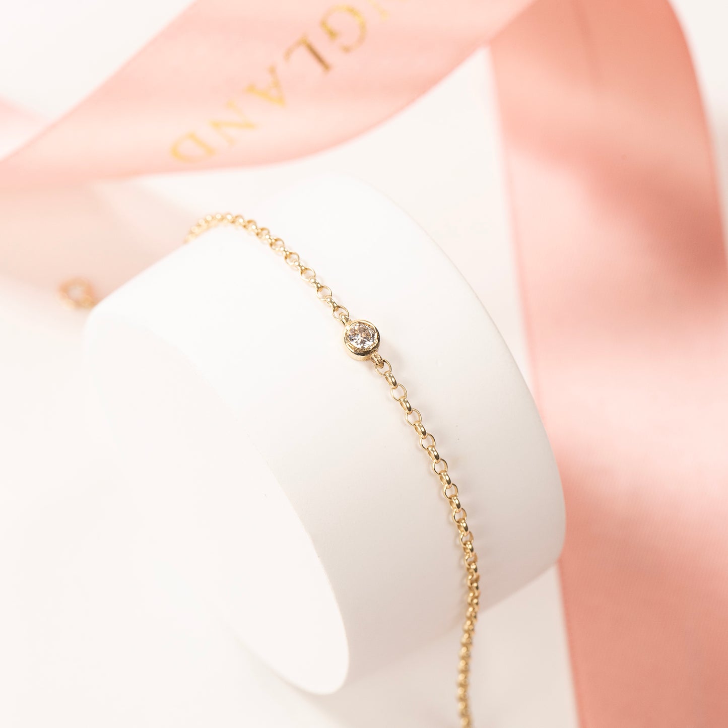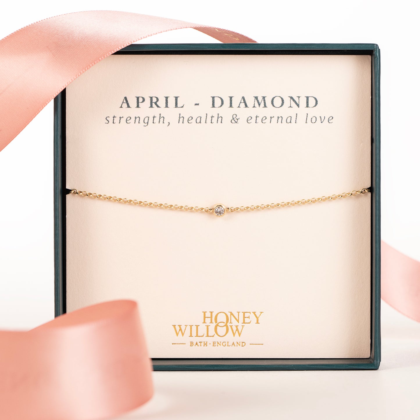 Celebrate her April birthday with a dainty 9kt gold bracelet, handmade with a single lab-grown diamond.