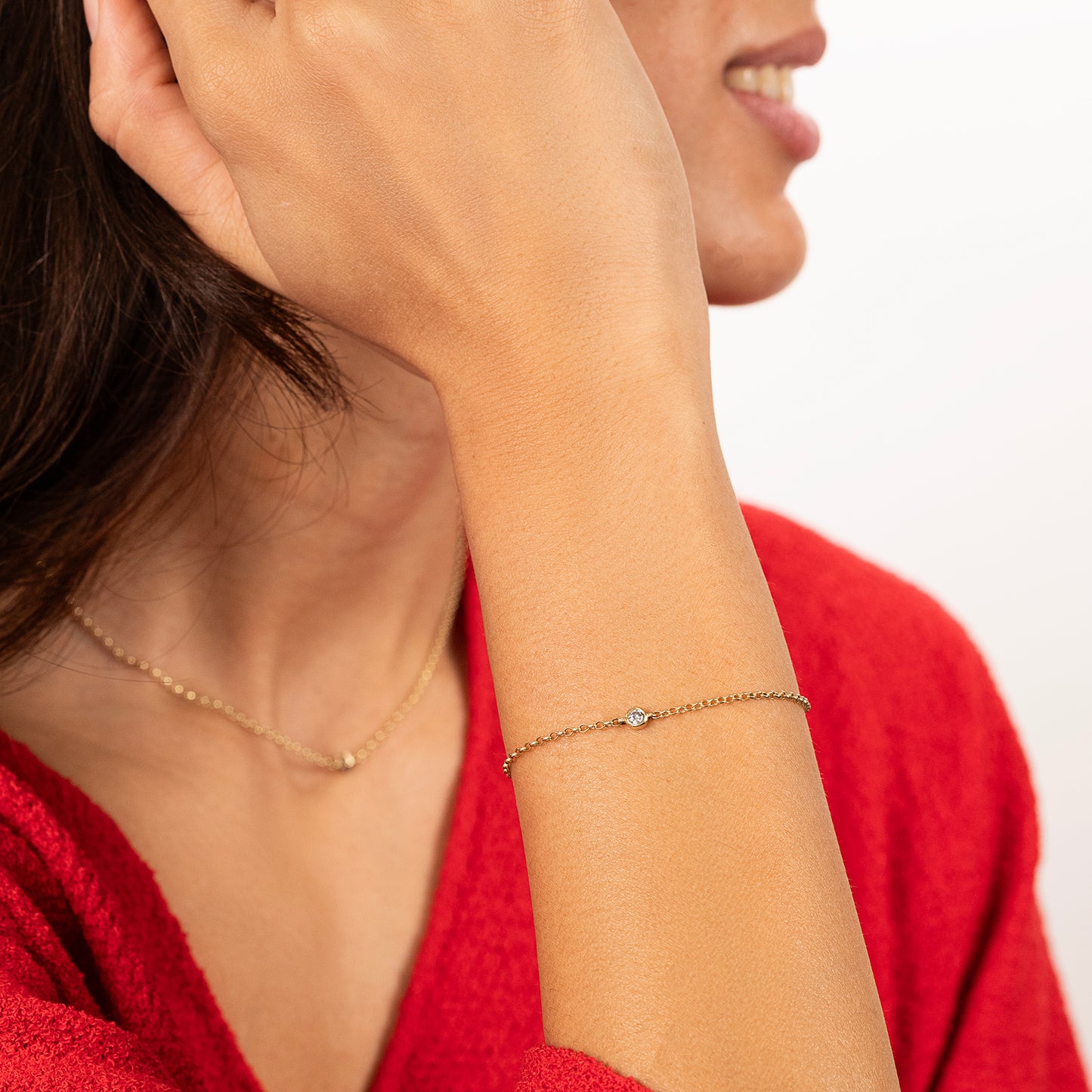 April Birthstone Bracelet - Single Diamond Solitaire - Lab Grown Diamond - 9kt Gold
