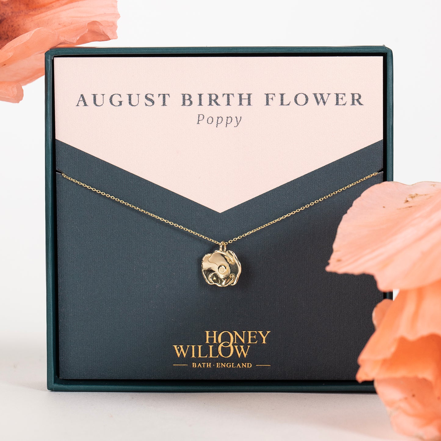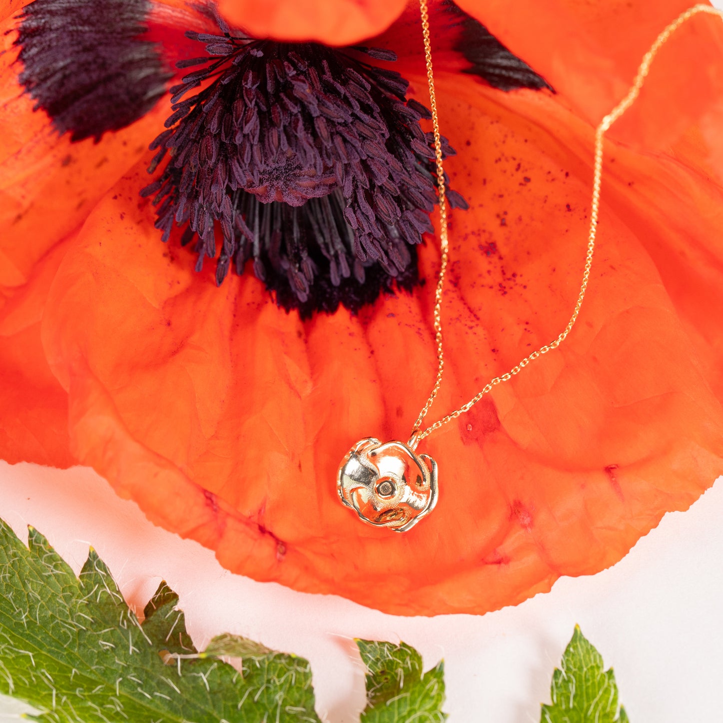 August Birth Flower Necklace - Poppy - 9kt Gold