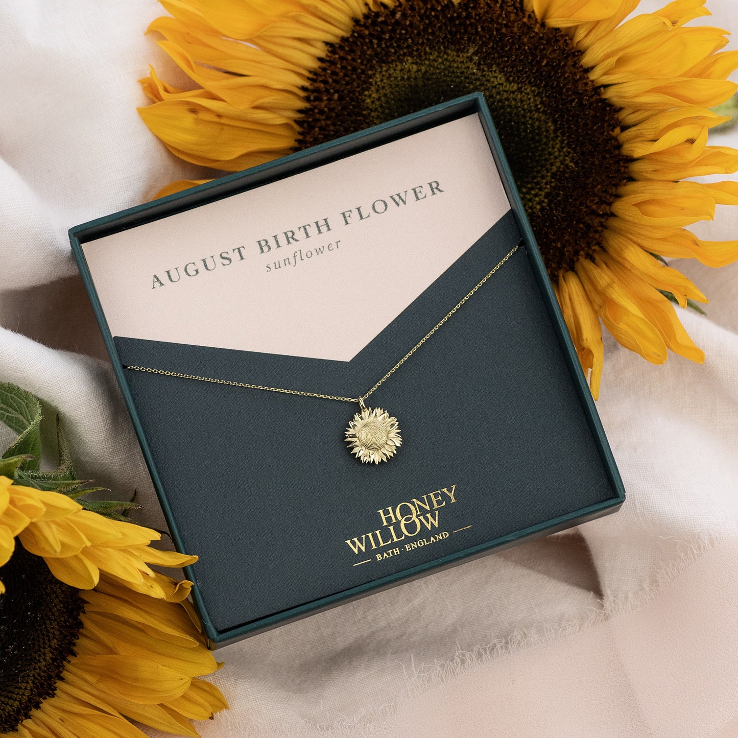 Celebrate her birth month with a dainty sunflower necklace, made with recycled 9kt gold.