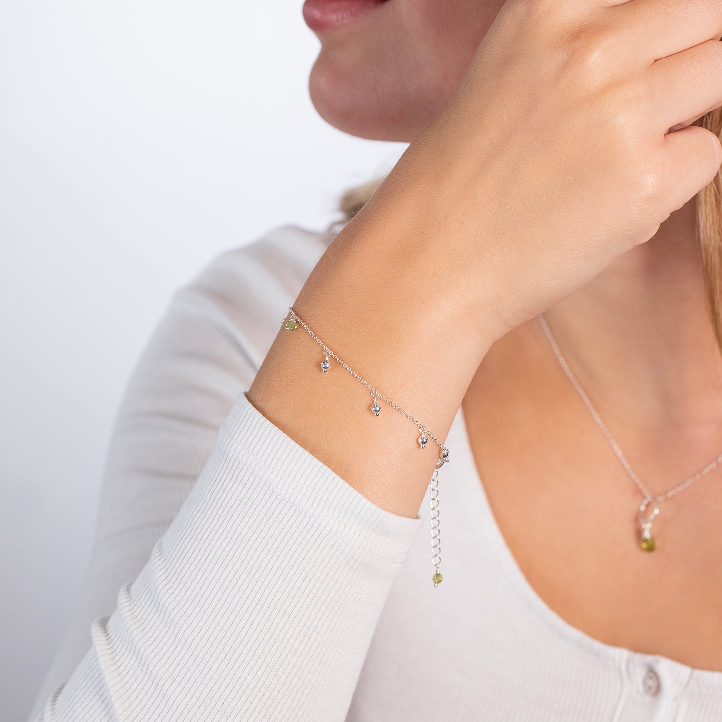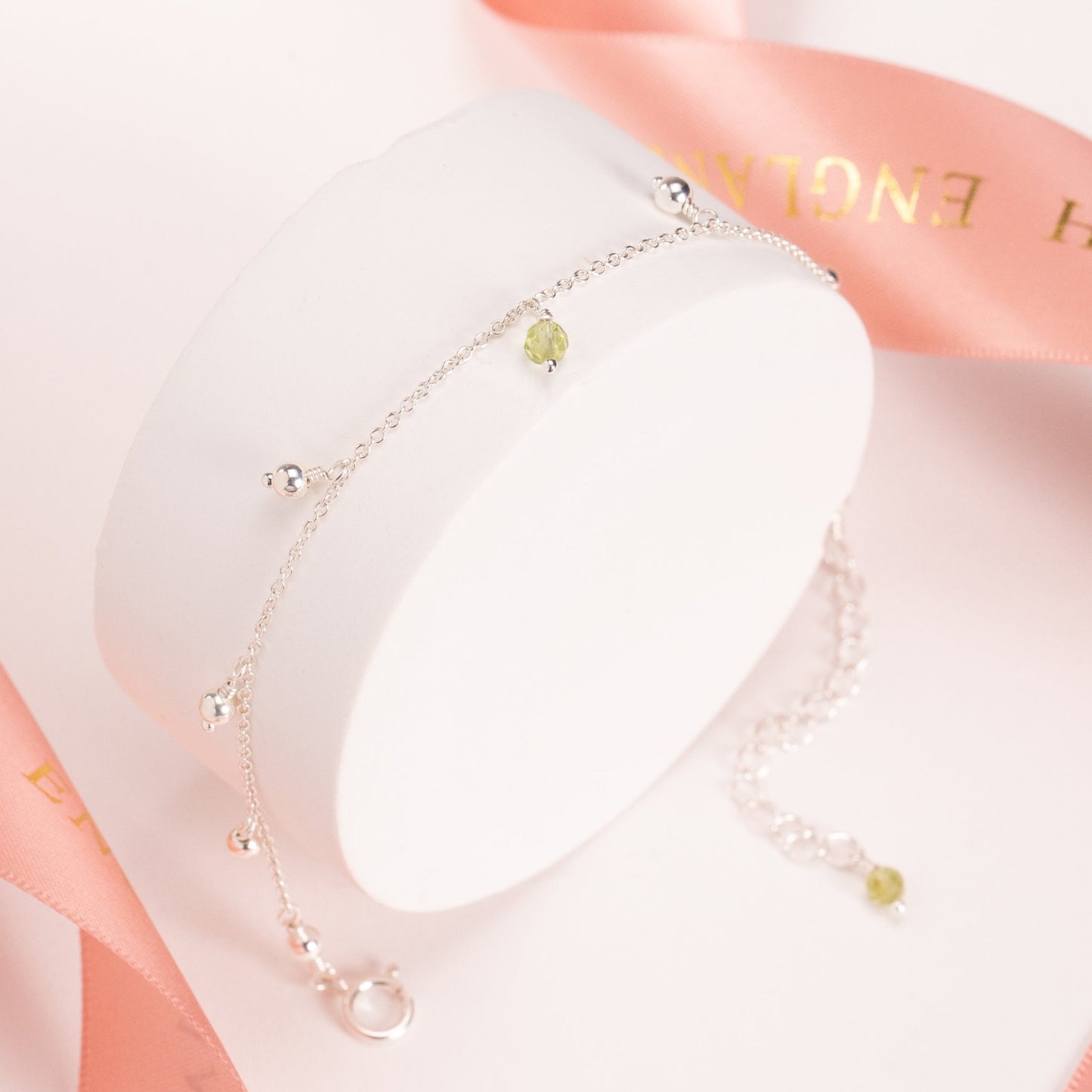 August Birthday Gift - Delicate Double Birthstone Bracelet - Peridot - Silver & Gold