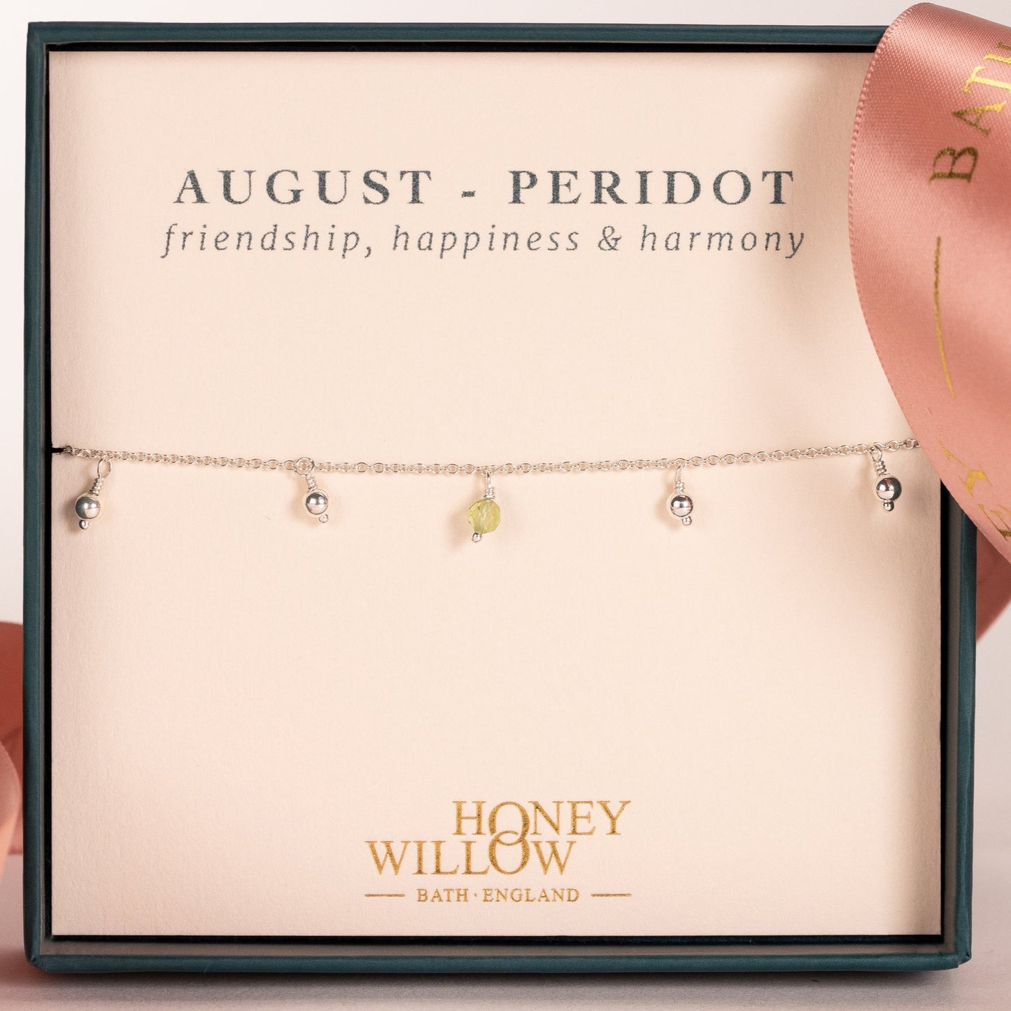 Celebrate her August birthday with a delicate bracelet, handmade with her birthstones.