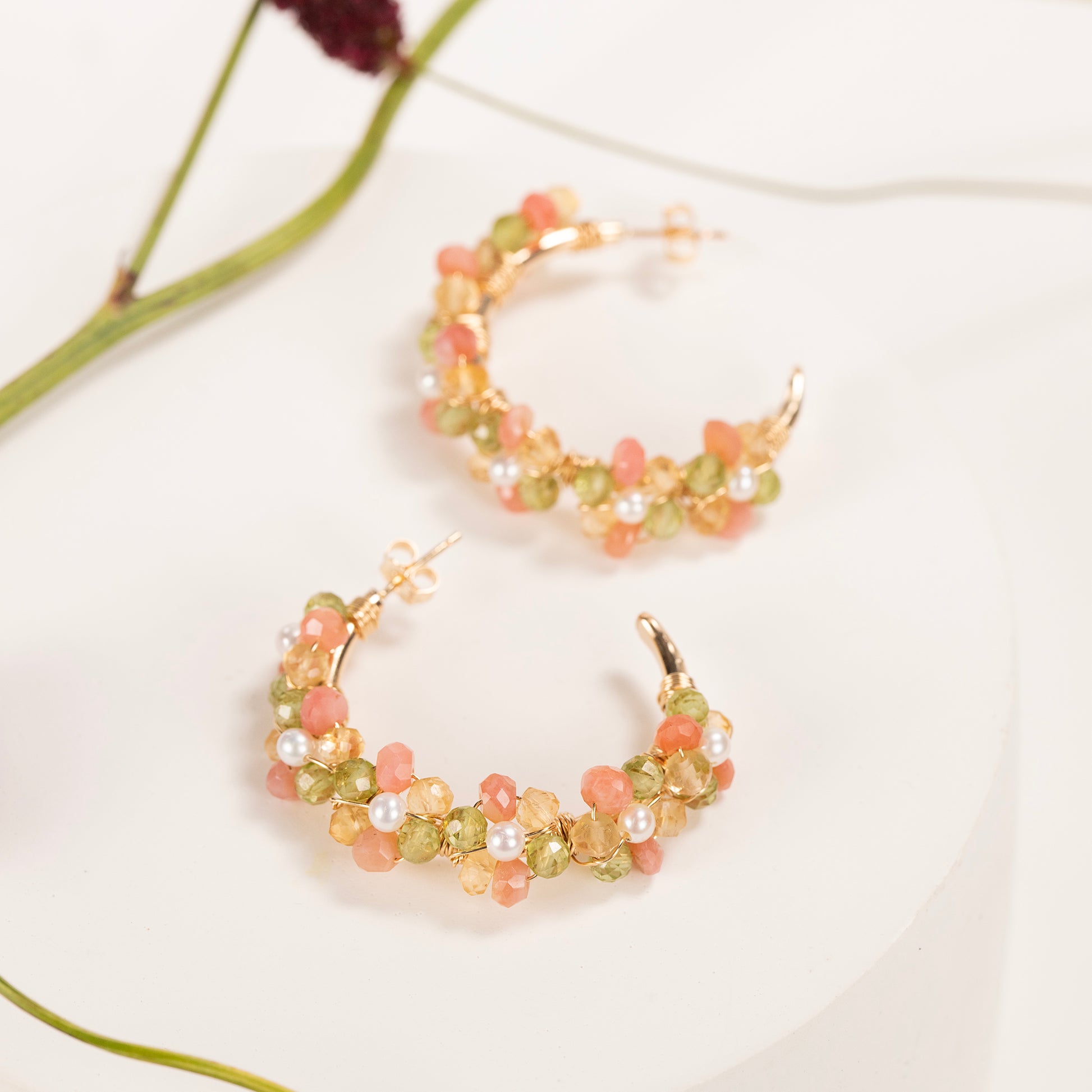 Autumn Colour Palette Inspired Hoop Earrings - Gemstones & Gold
