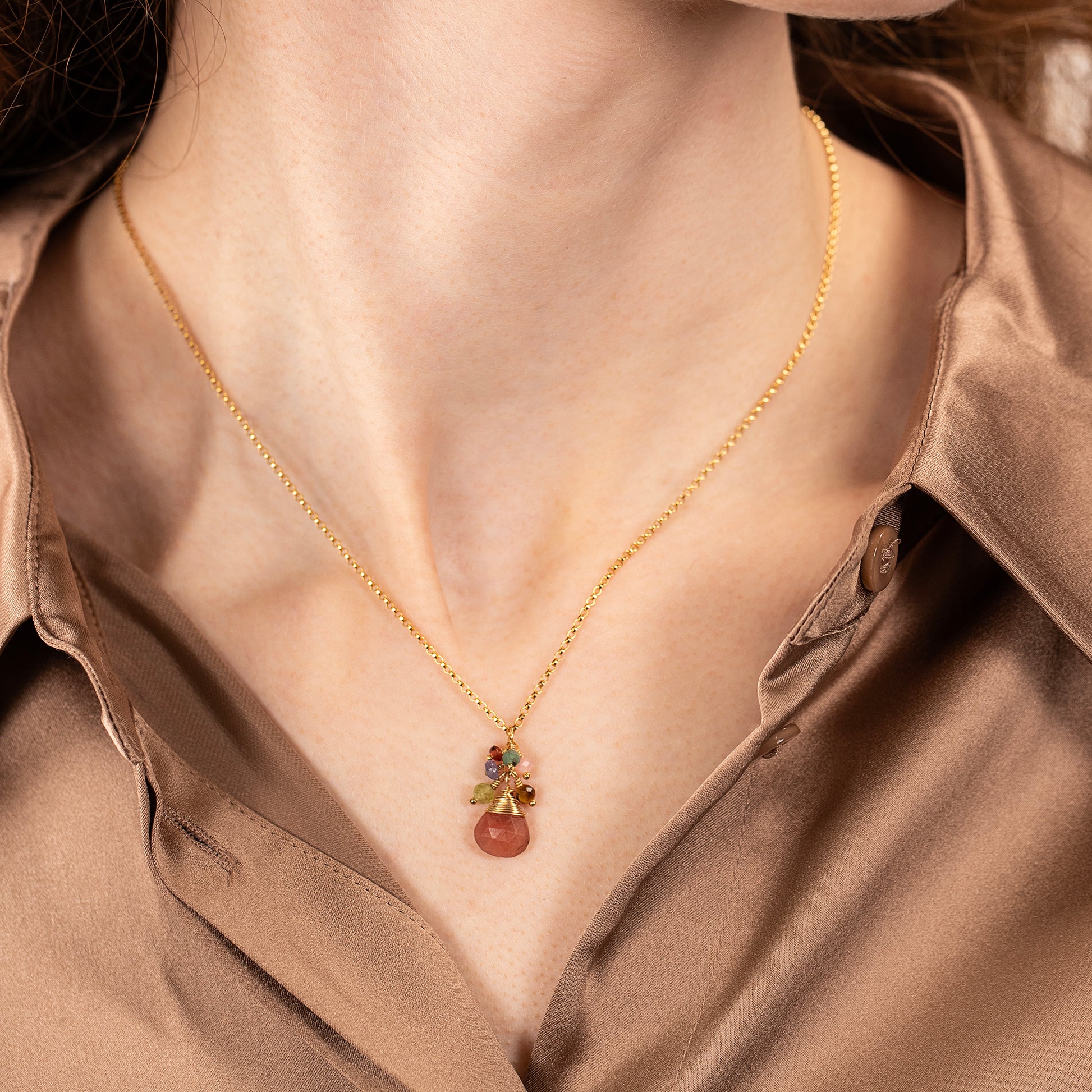 Autumn Colour Palette Inspired Necklace - Rhodochrosite Gemstones & Gold