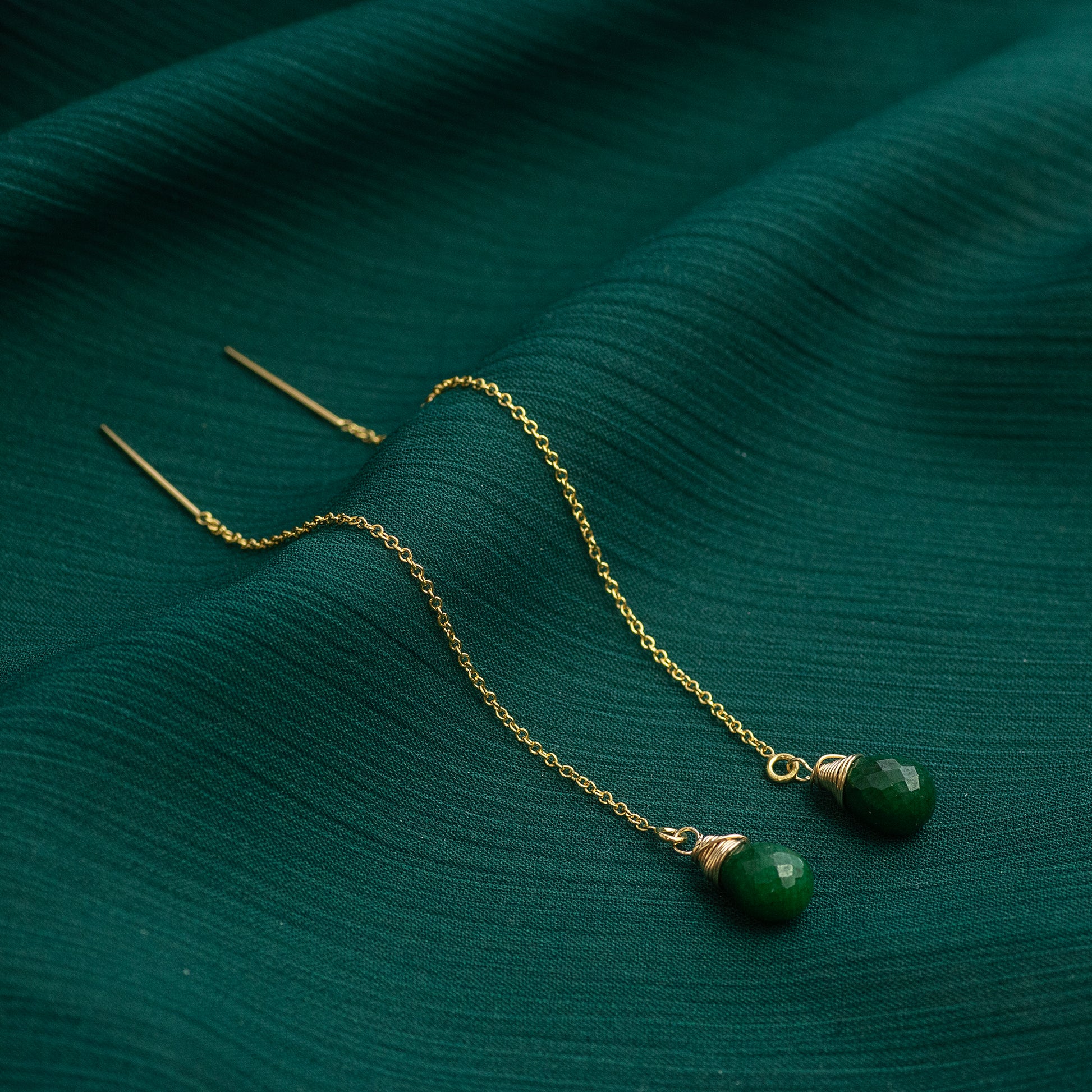 These long delicate birthstone threader earrings are made with the wire-wrapped birthstone of your choice.