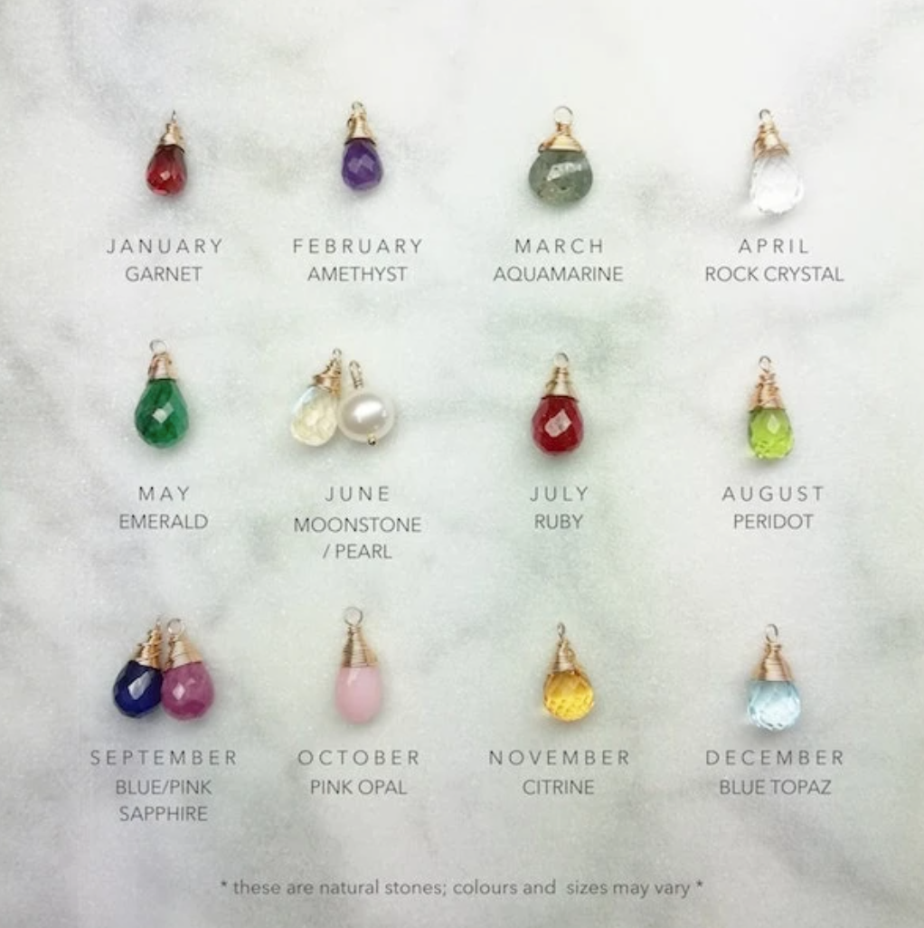 The earrings are made with fine, delicate chain which is threaded through a pierced ear and adjusted so that the birthstone sits where the wearer prefers.