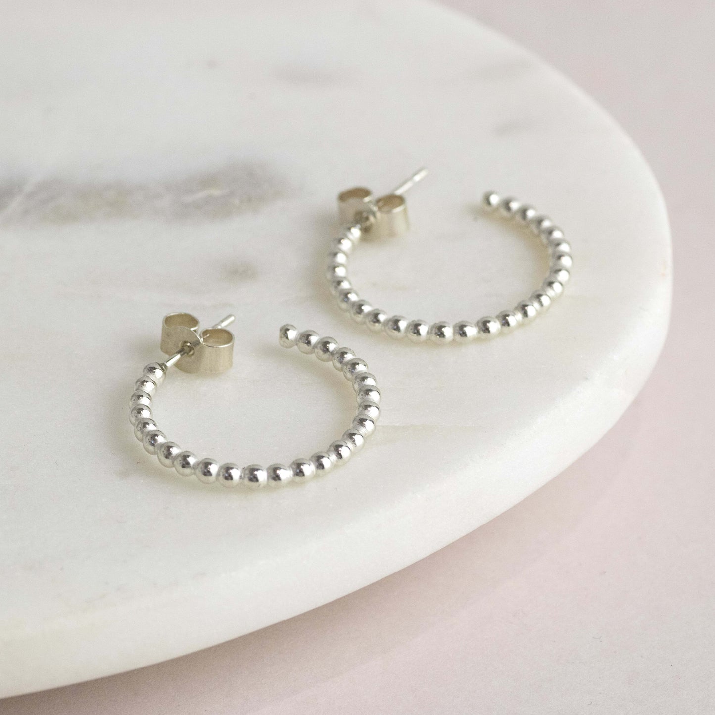 Christmas Gift for Her - Petite Beaded Silver Hoops - 2cm