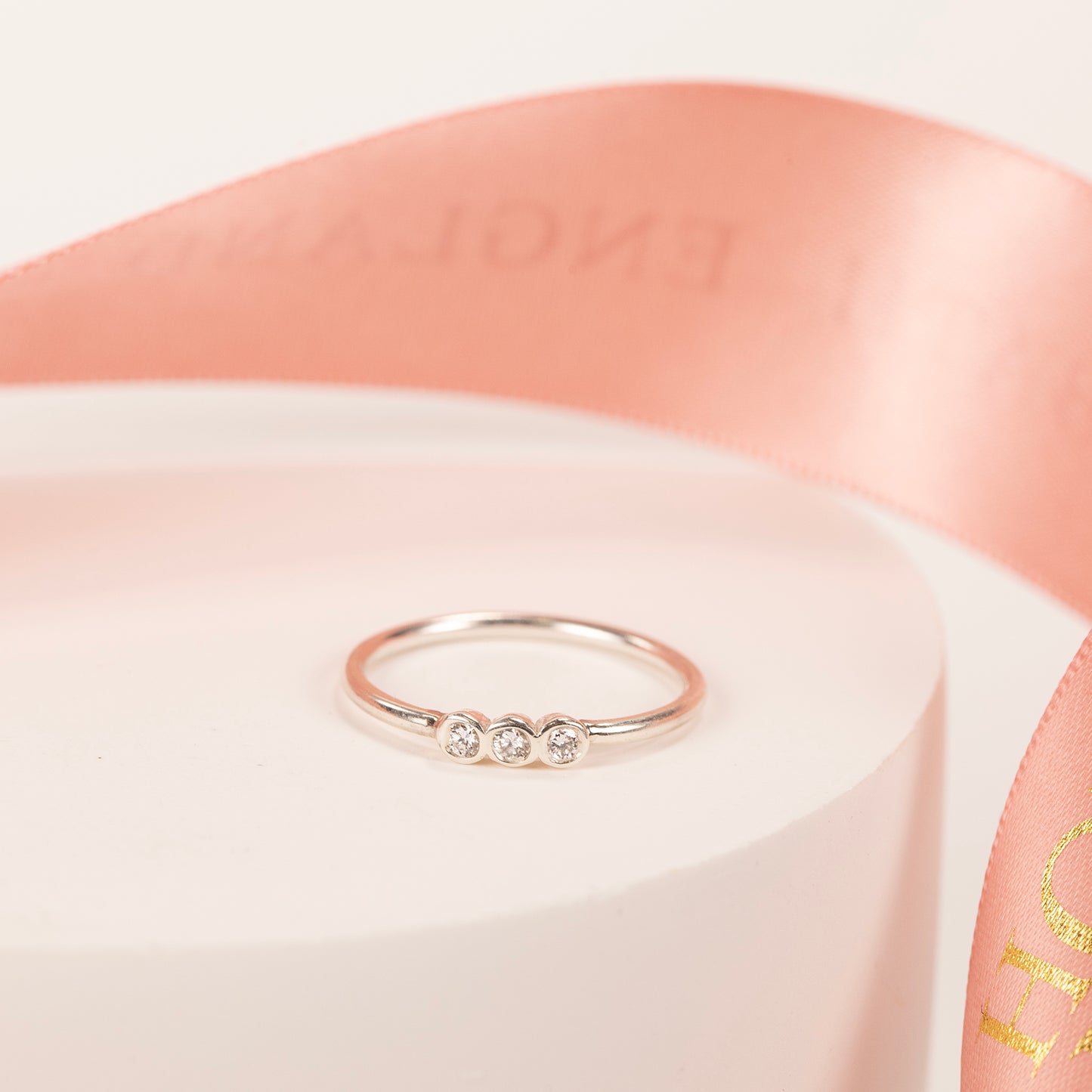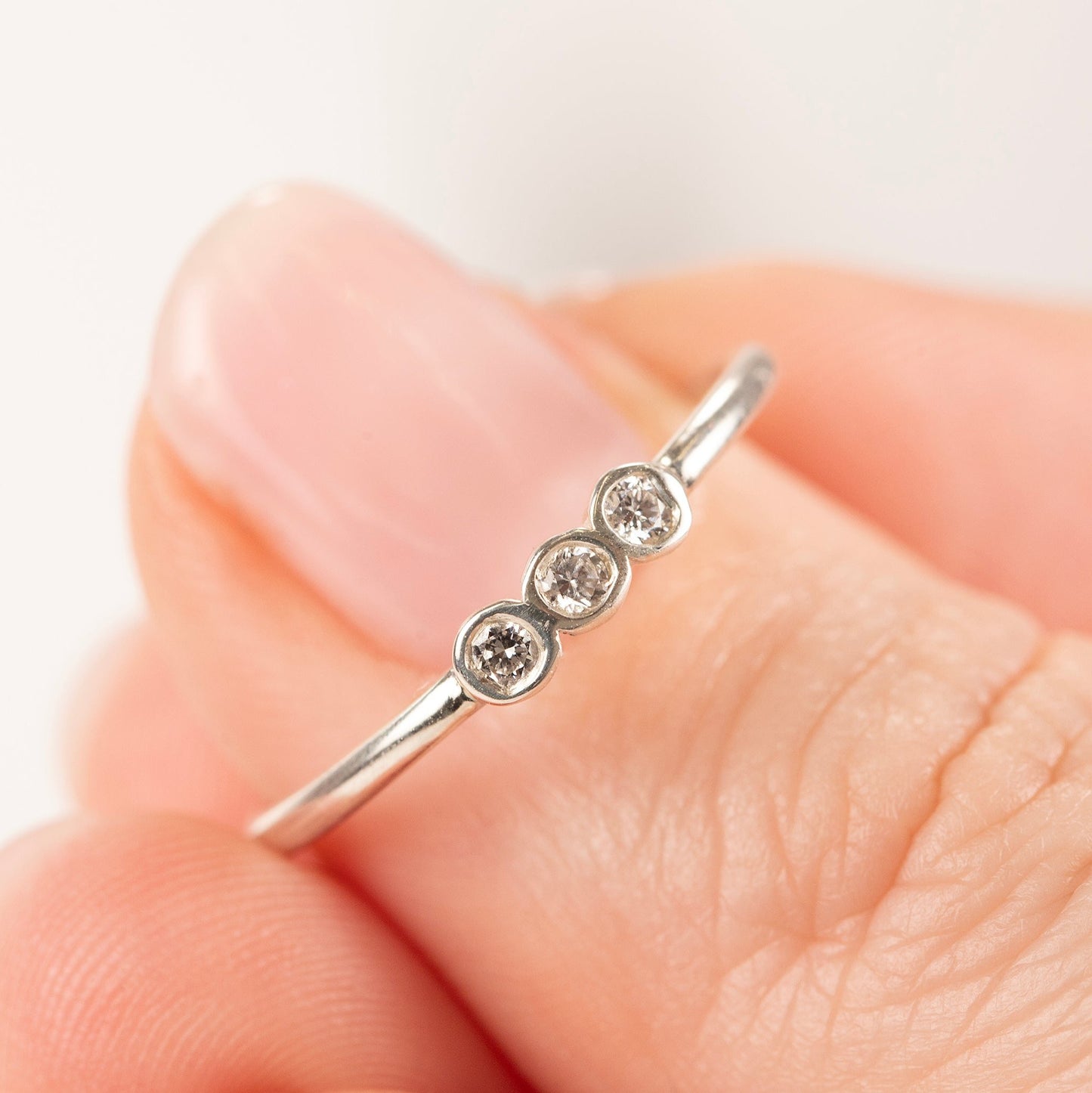 Dainty Diamond Trio Ring - Lab Grown Diamonds & Silver - 2mm