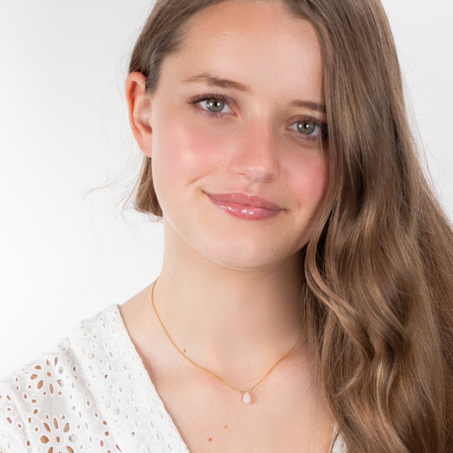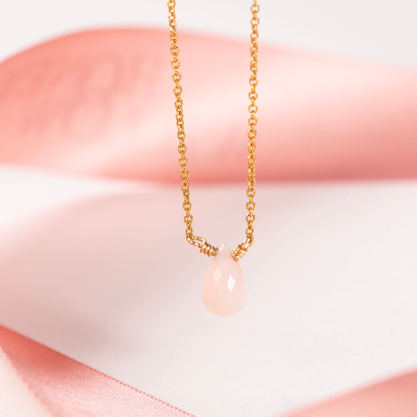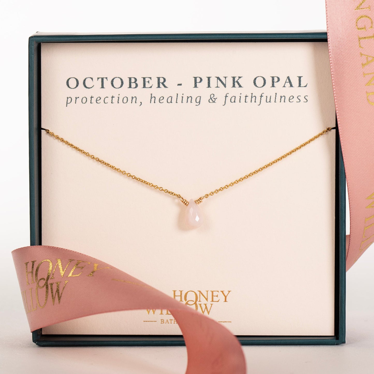 Celebrate her October birthday with a dainty necklace, handmade with pink opal, a birthstone for October.