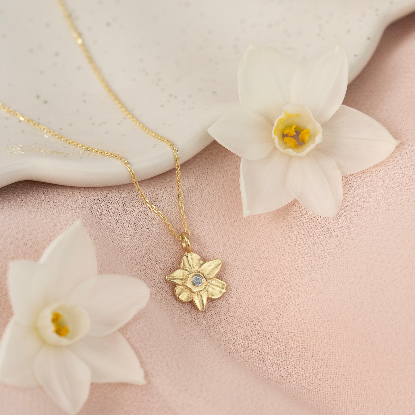 Celebrate her birth month with a dainty daffodil necklace, made with recycled 9kt gold.